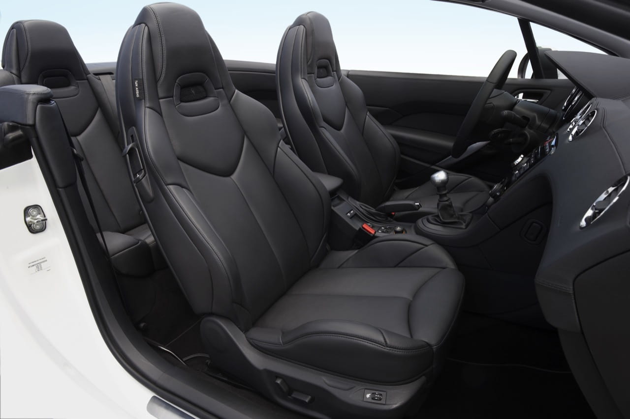 Un vistazo al interior revela el traspaso desde el 308 al 308 CC de la forma del salpicadero, la colocación de la instrumentación y en general el diseño del habitáculo. Hay detalles diferentes, como el cuero para volante y pomo de cambio de serie, los pedales en terminación cromada, etc. Donde hay sutiles variaciones es en los asientos, los delanteros con el sistema de calefacción Airwave y los traseros con un reposacabezas más alto para mejorar la comodidad.