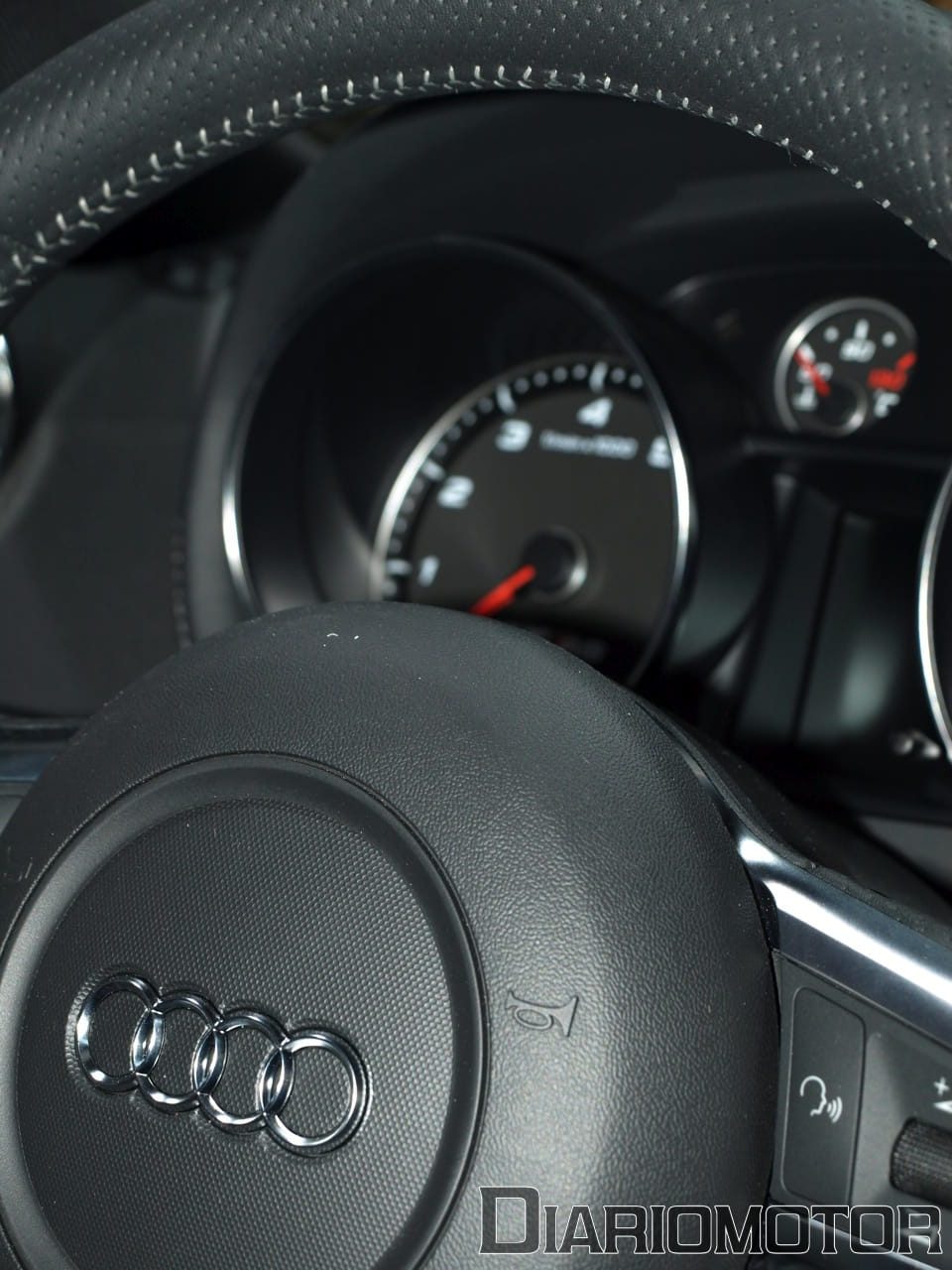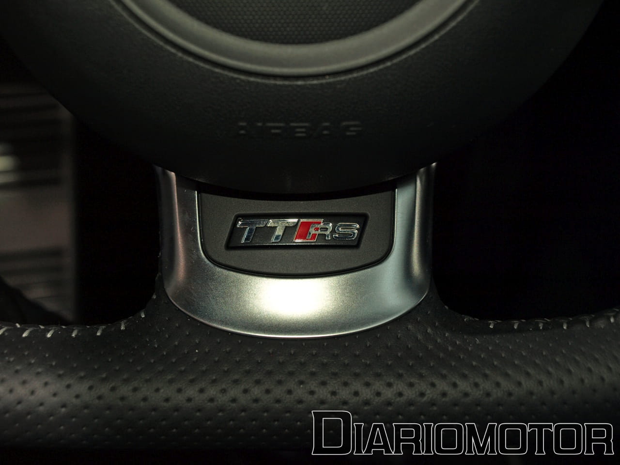Aunque no estuviera vestido con las elegantes llantas de doble radio típicas de las sagas S-Line, los grandes discos de freno perforados lucían perfectamente. Sin embargo los detalles que bien apreciarán los entendidos estaban perfectamente a la vista en el interior, que como en un TT está cuidado pero en este caso muy especialmente con particularidades que firman las diferencias en las distancias más cortas. El TT-RS es un mundo de cromados y de cuero, orquestado para no caer en excesos y brillar de forma inigualable.