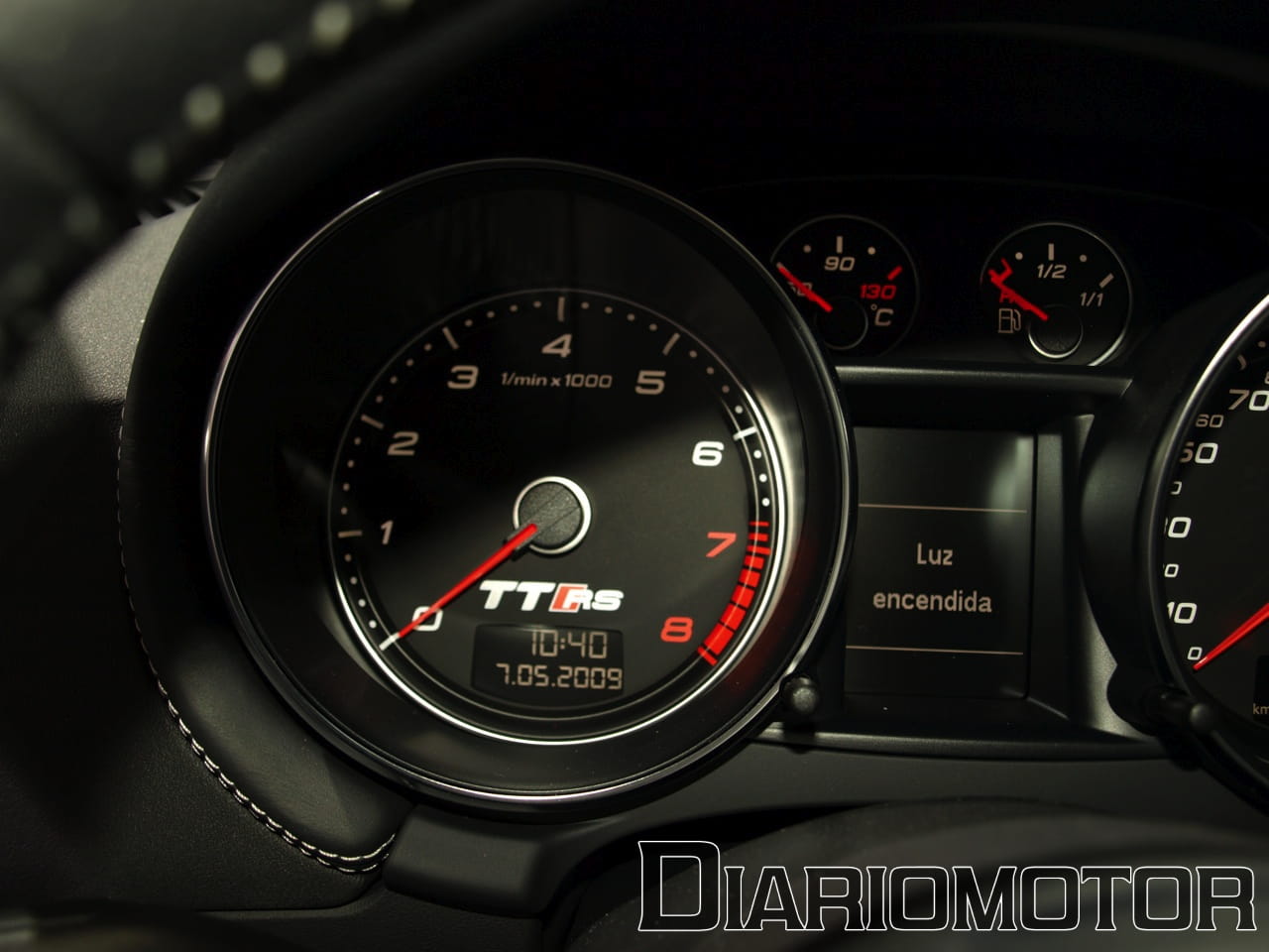 Después de los asientos deportivos en cuero, recogedores al máximo y con el aporte de sensación deportiva necesario, el cockpit es una de las partes más bonitas del conjunto. Rojo, gris y blanco son los colores que adornan el velocímero y el tacómetro con el detalle “TT RS” inscrito en el centro. En este juego aparece también la chapita de la base del volante y el pomo del cambio en metalizado con una línea circular roja.