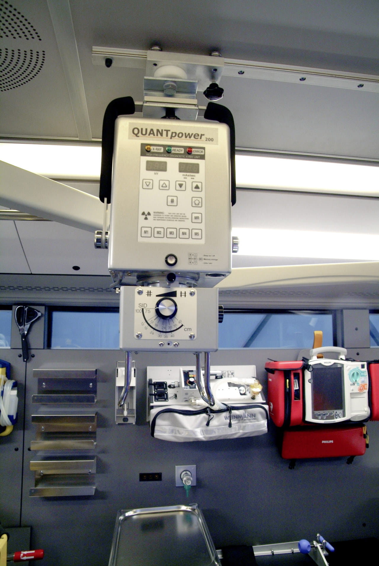 La versión UCI demuestra su completitud incorporando como destacable una unidad ligera de rayos X además de una máquina para realizar electrocardiogramas, un medidor de oxígeno a través de los tejidos, etc. Todo lo necesario para realizar las primeras valoraciones de los pacientes pero desplazable hasta el epicentro del accidente o donde sea necesario por cualquier otra causa.
