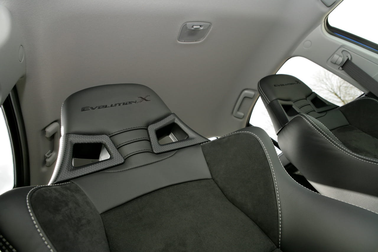 Los ingenieros de Mitsubishi han conseguido exprimir aún más el motor 2.0 turboalimentado del Evolution X para conseguir superar la barrera de los 400 CV a 6500 rpm y un par máximo de 525 Nm a 3500 rpm gracias entre otras cosas a que se han instalado nuevos inyectores, un nuevo turbo, un intercooler mejorado, un nuevo sistema de escape y una reprogramación para la centralita. Las cifras hablan por sí solas: 0 a 100 km/h en solo 3,8 segundos y una velocidad máxima de 250 km/h, limitados electrónicamente.