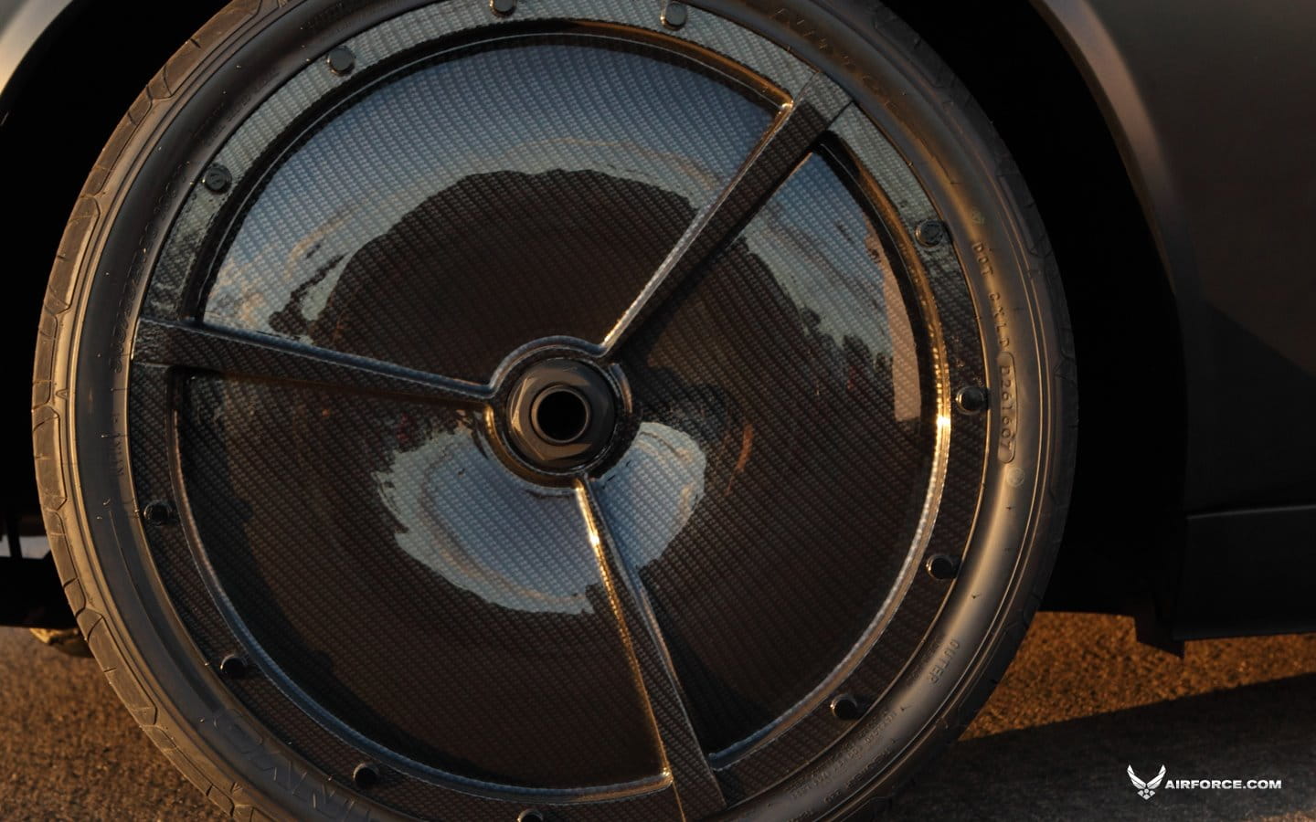 El Dodge cuenta con un kit de carrocería inspirado en estos aviones, de cierto hermetismo visual. Con ello hago referencia a unas llantas oscuras construidas en fibra de carbono y pintura invisible a las ondas del radar. Es espectacular estéticamente hablando, y con esos LEDs ubicados bajo la agresiva calandra casi parece sacado de películas futuristas como Mad Max o Terminator. Las ópticas traseras se han oscurecido y personalizado. En mi opinión haría una buena pareja con el Lamborghini Reventón.
