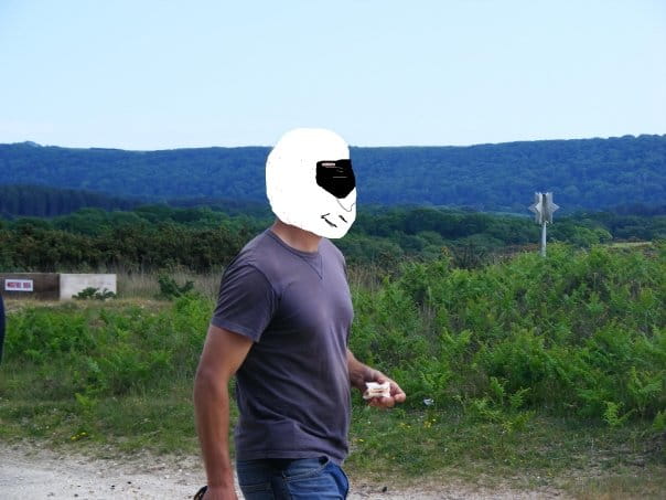Por si no fuera poco en una de las fotos se puede ver a una persona desconocida comiendo un sandwich a la que se le ha tapado la cara de manera improvisada con un casco dibujado con algún sencillo editor de imágenes. ¿Será The Stig?