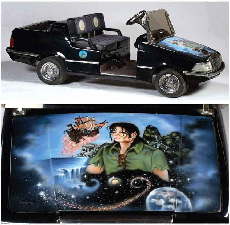 En su rancho de Neverland tuvo una Harley Davidson de policía y un camión de bomberos. Su afición por Peter Pan y los juguetes infantiles le llevaron a encargar un carrito de golf personalizado con su interpretación del cuento o una réplica de pequeño tamaño de un Dodge Viper, decorada con dibujos de la serie «The Simpsons». Otras excentricidades incluían un carro de caballos de principios del Siglo XX de propulsión eléctrica o una réplica de un vehículo de 1909, un Detamble Model B Roadster.
