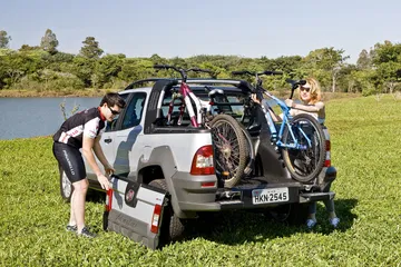 El diseño del Cabine Dupla es prácticamente calcado al de su compañero de cabina simple, incluyendo sus amplias protecciones en plástico gris que rodean su perímetro. Una de sus mayores facilidades es la del acceso tanto a la cabina como a la caja de carga gracias a varios apoyos de pie situados debajo de las lunas traseras y del portón, complementados por unas asas colocadas donde termina la cabina. Por si se lleva en la caja una carga pesada o voluminosa existen unos barrotes que protegen la luna trasera.