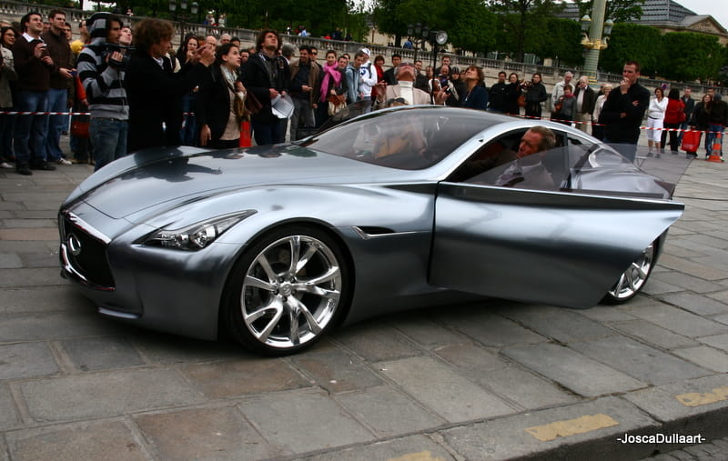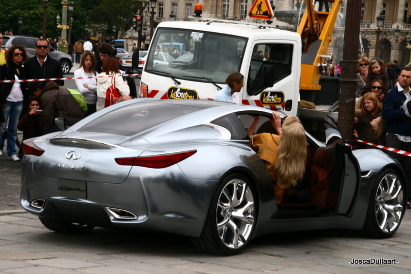 Lo he hecho a propósito, justo desde París nos llegan estas imágenes, tomadas en algún tipo de evento relacionado con el mundo de la moda en el que la gente no hace demasiado caso al coche. No es un hito relevante y mucho menos una noticia en sí, pero me pareció una ocasión que no podía desperdiciar para volver a recrearnos en esta belleza automovilística. Ojalá Infiniti se plantee en un futuro el desarrollo de un modelo similar o al menos incorporen en sus modelos de producción algún rasgo estilístico del Essence.