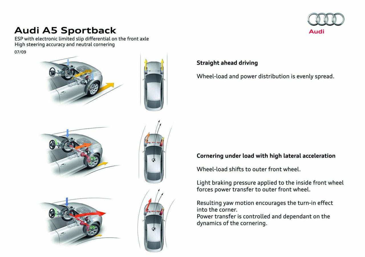 Los coches candidatos a montar la caja de cambios S-Tronic incluyen de serie el sistema de tracción quattro, con la opción de montar un diferencial deportivo para el eje trasero en el 3.2 TFSI y el 3.0 TDI. La estabilidad de los modelos que no equipan la tracción quattro esta garantizada mediante un diferencial electrónico en el eje delantero que evita el subviraje.