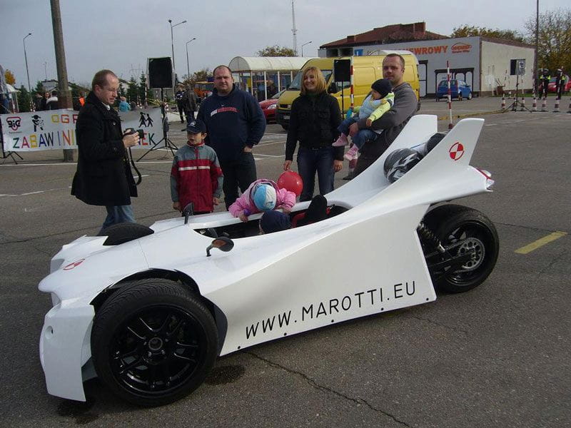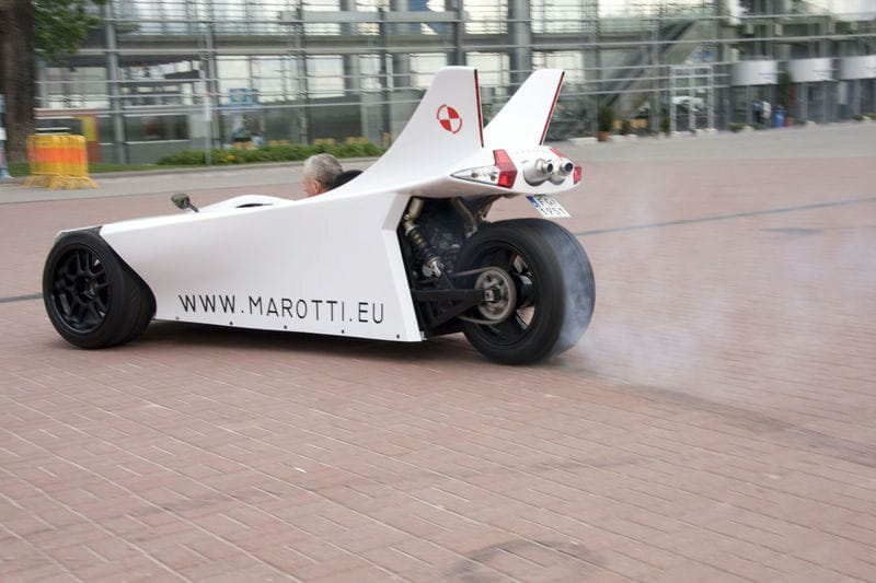 El nombre Marotti no me es familiar, pero si me dice que se asocia al mundo del automóvil inmediatamente pienso en algo rápido y de origen italiano. No me equivocaría en la primera parte de la respuesta, pero sí lo haría en la segunda. El Marotti es un trike inverso de desarrollo y fabricación polaco, un país que como industria propia automovilística solo tiene los antediluvianos Polonez. Nada que ver con el Marotti, que para empezar tiene dos ruedas delante y sólamente una rueda de medidas 275/45R17 detrás.