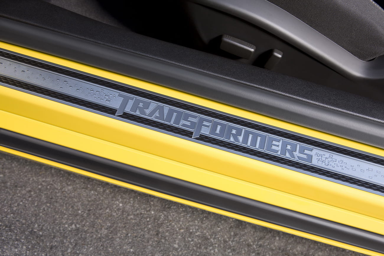 Del Bumblebee de la película han desaparecido las originales llantas, el ampliado capó o los parachoques Z28 y en lugar de ello aparecen los logos de los Transformers y los Autobots. Éstos se reparten entre las aletas laterales, el eje central de cada una de las llantas o en las franjas negras sobre el capó por la parte exterior. En el interior se distingue el bordado del logo en el reposabrazos central y en la placa metalizada del pie de puerta.