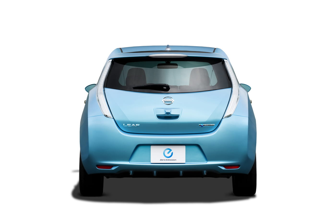 El LEAF mostrado por Nissan es de producción en más de un 95%, apenas cambiará la pintura y algunos materiales del habitáculo. Su diseño es similar al del compacto Tiida, lógico puesto que se basa en él. El frontal del coche estrena unos faros 100% LED – cortas, largas, diurnas – y levantando la tapa sobre la que se sitúa el emblema de Nissan accedemos a las tomas de corriente para recargar las baterías. La zaga es destacable, con unas curiosas ópticas y un portón de maletero con un aire al Renault Mégane II.