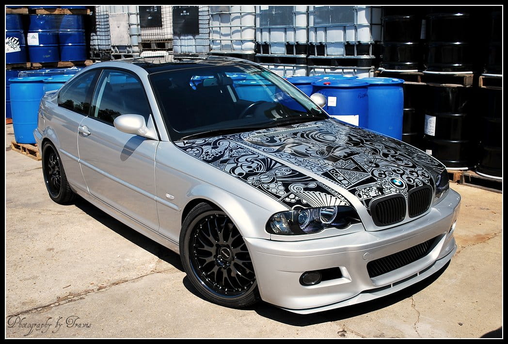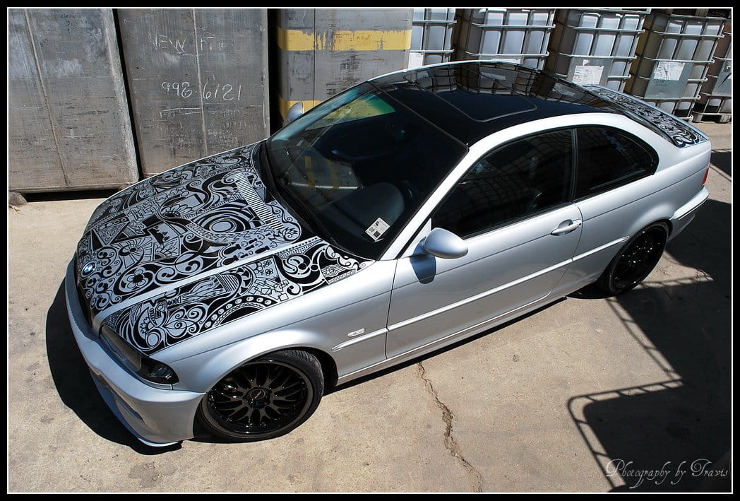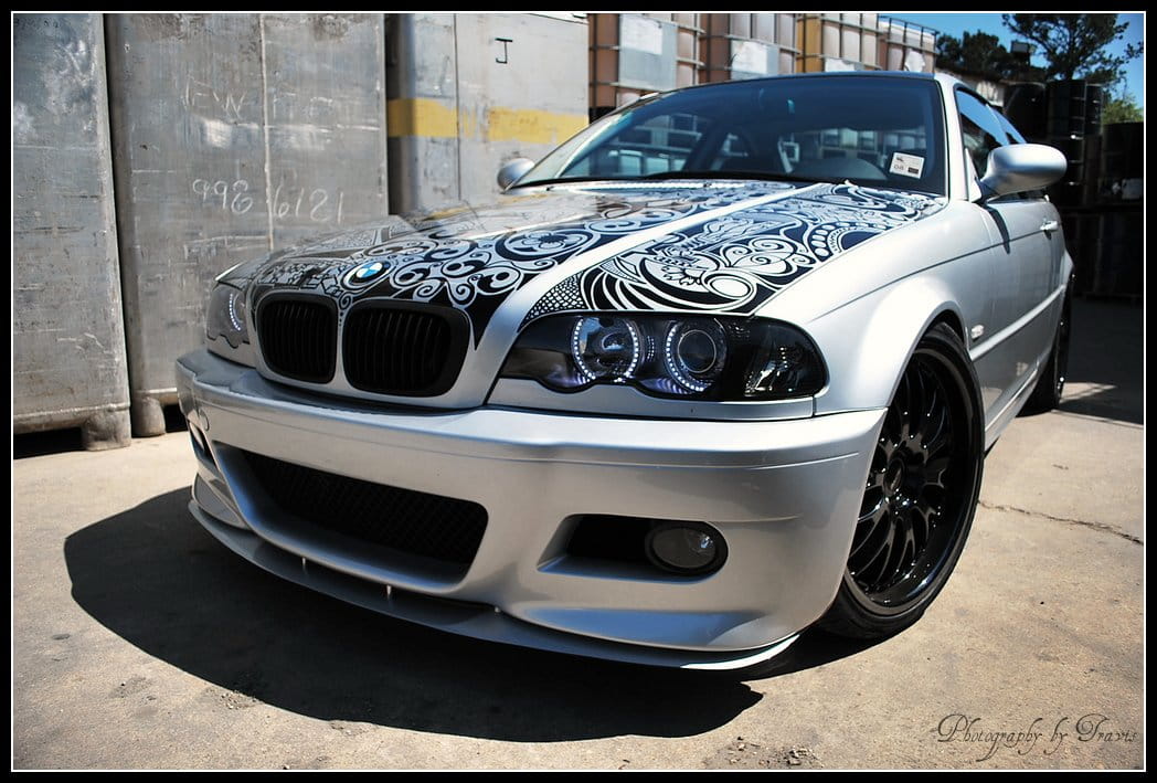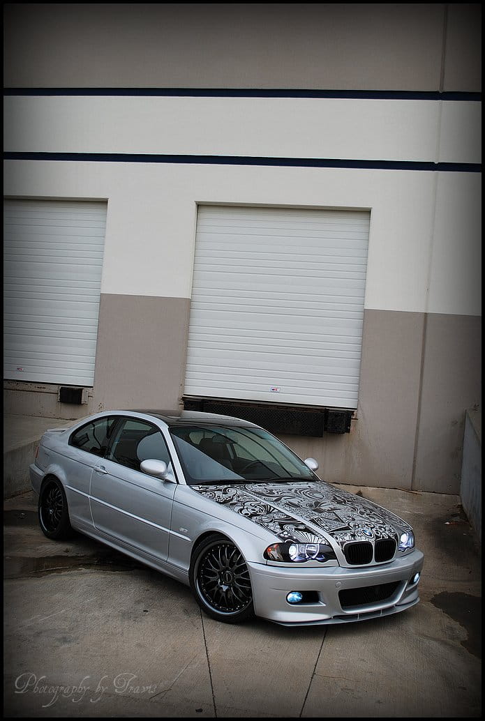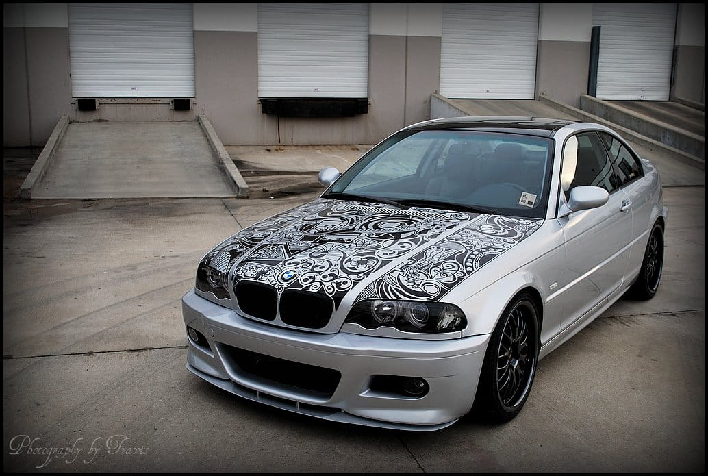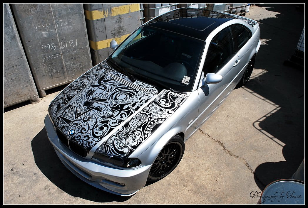 Travis Todd no es un profesional en esto de aportar arte a los coches porque se dedica a ello únicamente en su tiempo libre, pero dada la calidad de sus trabajos yo desde luego le pondría esa etiqueta. Uno de sus trabajos comprende un BMW E46 330ci en el que lo más llamativo nos son las llantas o los cromados sino el tatuaje que lleva encima.