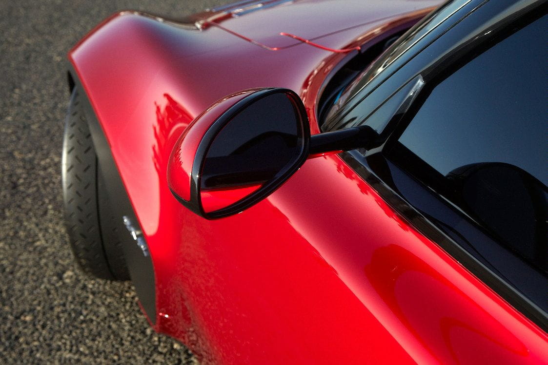 Por tanto su efectividad queda fuera de toda duda, y de hecho aún podría mejorar en la fase de fine-tuning. Por lo que parece también entra por los ojos, las imágenes oficiales así lo confirman. Un aspecto semi-retro evoca a los Shelby Cobra, pero está combinado con una buena dosis de músculo moderno, presente en amplias tomas de aire o los espectaculares pasos de rueda. La carrocería combina dos colores, formando un bonito contraste con el techo de cristal tintado. Las puertas se abren al estilo Lamborghini.