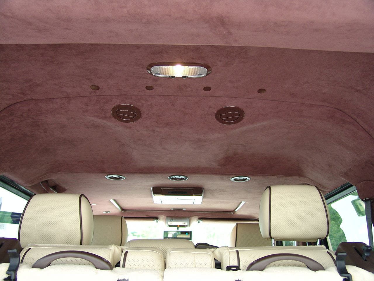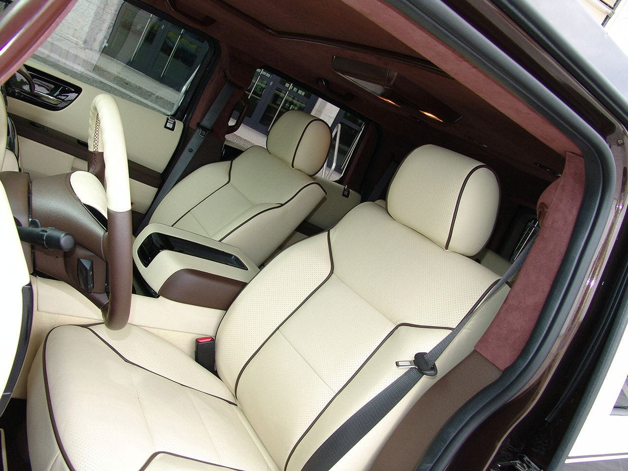 Está claro porque lo han bautizado como Latte Macciatto, la combinación beige/marrón de su carrocería bitono evocan al café. El habitáculo también está dominado por tonalidades oscuras, con cuero de alta calidad y Alcantara recubriendo salpicadero, volante, asientos o techo. La calidad de los acabados es muy alta, y estoy seguro de que el equipo de sonido Pioneer con navegador GPS hace las delicias de los ocupantes, pero toda la magia se pierde al contemplar los rodillos las llantas de este Hummer H2 cafetero.