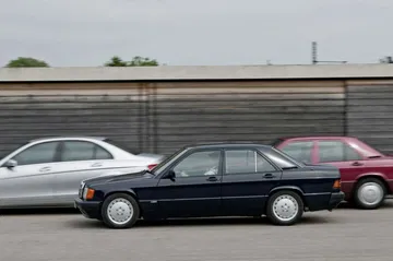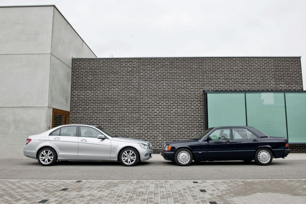 Acelera hasta los 100 km/h en 6.2 segundos, 11.9 segundos más rápido que el glacialmente lento Mercedes 190 D 2.5, una de las opciones diésel más vendidas en la gama 190. Su consumo medio de combustible según el actual ciclo europeo de homolgación es de sólo 4.9 l/100 km, menos incluso que el actual Mercedes C 250 CDI. Aunque es menos aerodinámico que el actual Clase C W204 – un Cx de 0.34 frente a 0.27 – el peso se deja notar mucho en los consumos.
