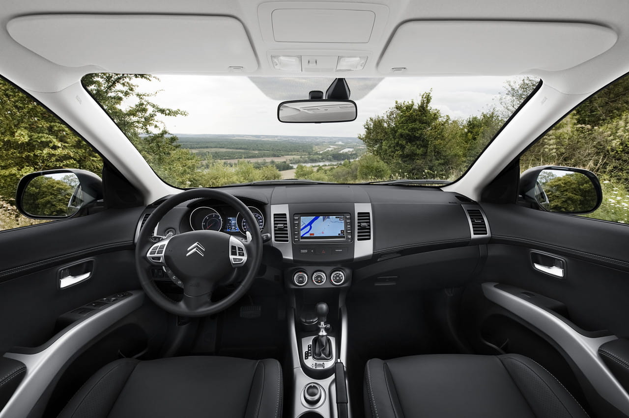 Algunas de las opciones más interesantes para incluir en el C-Crosser son los faros de xenón, el techo eléctrico o el paquete que incluye la cámara de visión trasera o el navegador NaviDrive con disco duro. Estos dos últimos hacen uso de una amplia pantalla táctil de 7” situada en la consola central.