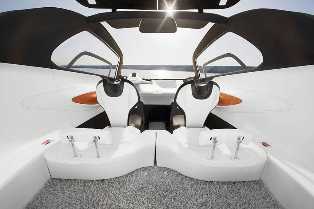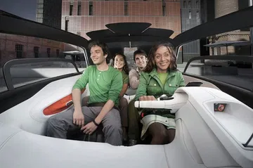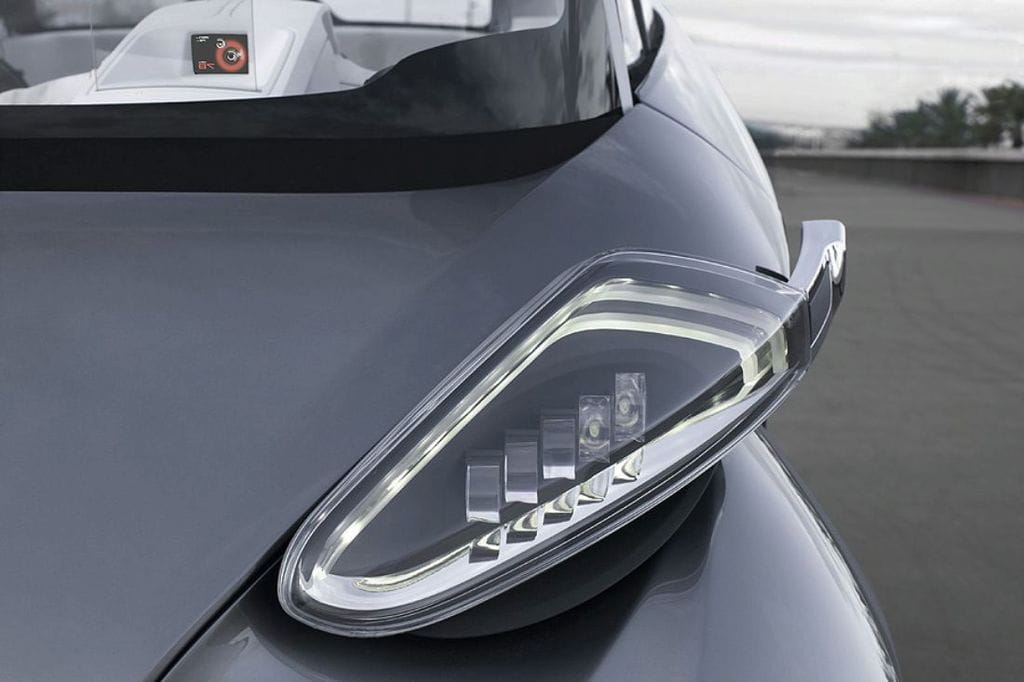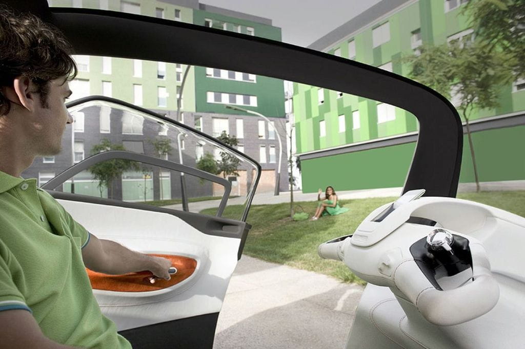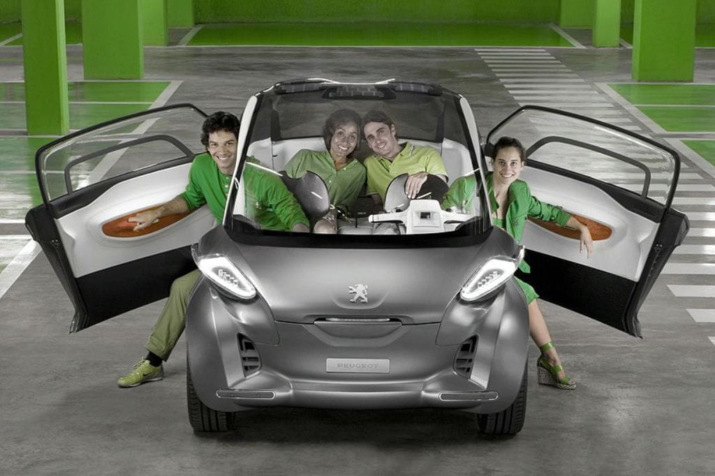 Ya os comentábamos que el Peugeot BB1 es un prototipo a medio camino entre scooter y automóvil, algo que se hace patente al ver que a un lado del futurista salpicadero nos encontramos con un manillar similar al de una scooter prescindiendo de volante. Otro detalle curioso son las dos puertas suicidas (se abren en sentido contrario al habitual) que permiten acceder con facilidad a las cuatro plazas disponibles.
