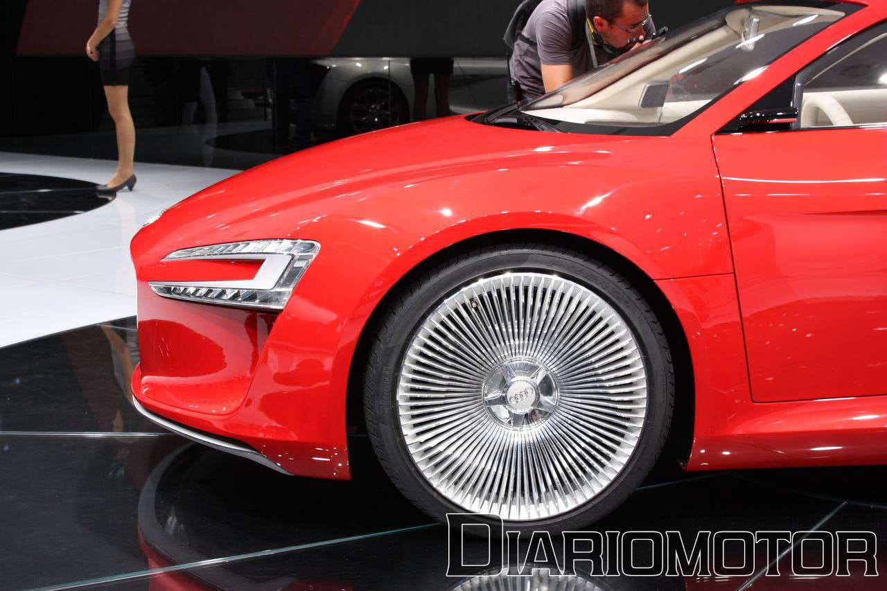 La otra gran novedad en Frankfurt ha sido el nuevo Audi e-tron Concept, un prototipo de superdeportivo eléctrico basado en la carrocería del Audi R8 que sin duda alguna adelanta lo que podría ser el futuro Audi R8 eléctrico. En este caso la carrocería es mucho más sencilla y minimalista y lo que más llama la atención son unas gigantescas llantas multirradio y la parrilla frontal cromada.