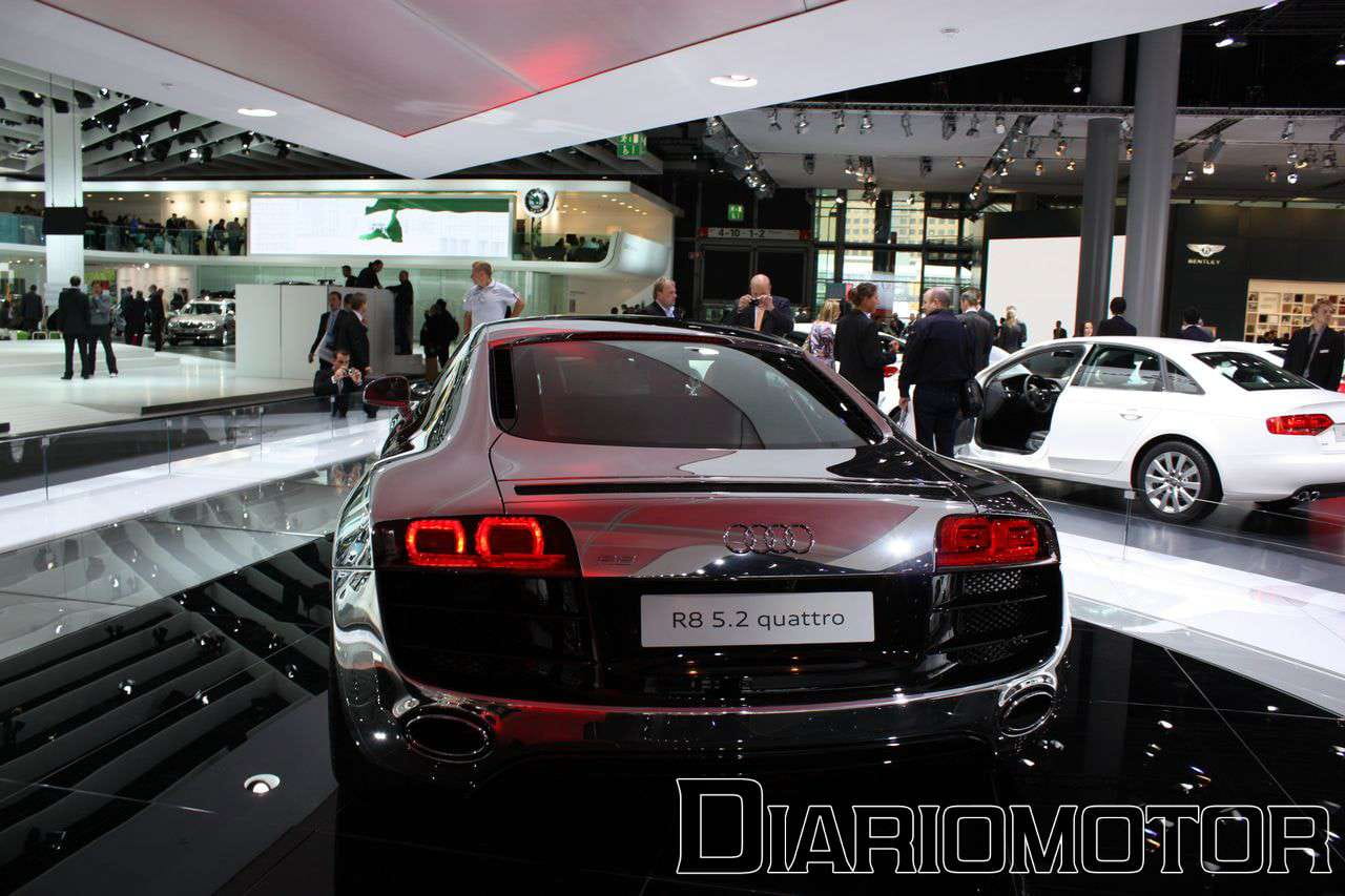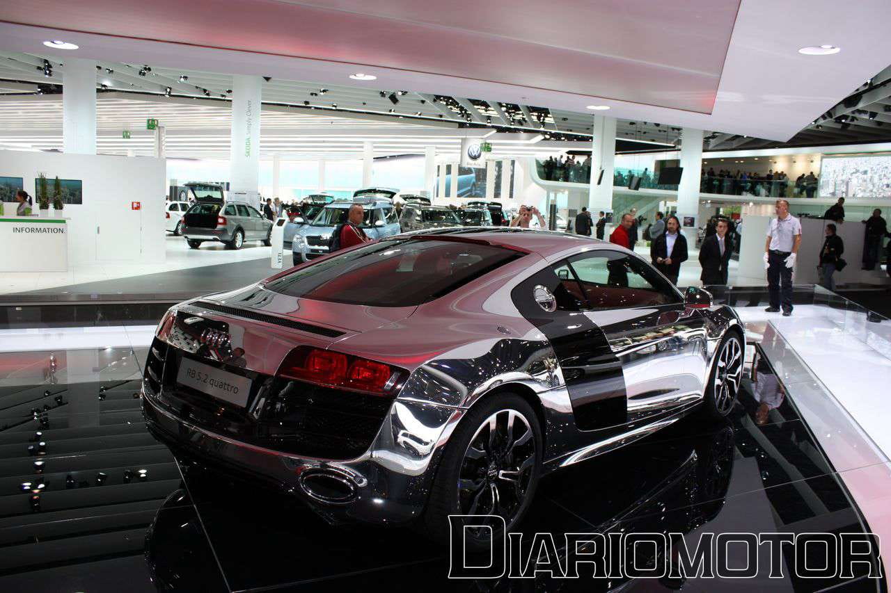 Pese a que el stand completo de Audi venía rebosante de novedades en este Salón de Frankfurt 2009 el centro de atención estaba en el espacio reservado a los “R8”, donde se pudo ver el presente y el futuro del Audi R8, el superdeportivo de la marca de los cuatro aros.