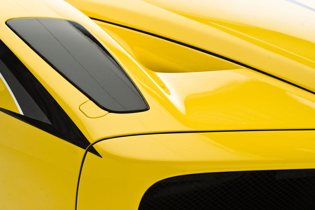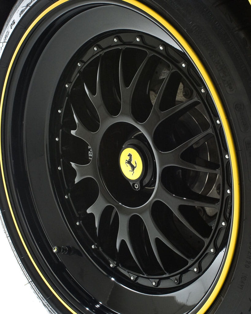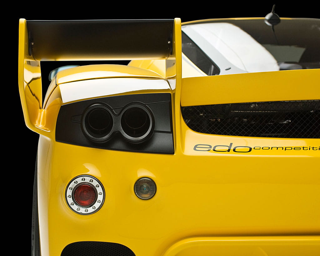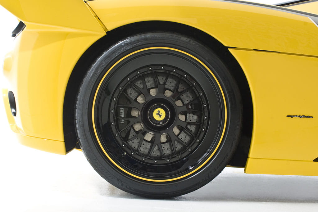 Y para el final dejamos todas las modificaciones estéticas y aerodinámicas. No son lo más acertado del coche, porque un Ferrari Enzo es casi inmejorable, pero seguro que después de todo lo comentado las veréis con otros ojos. El alerón trasero es ajustable y proporciona más downforce y estabilidad a altas velocidades. También aparecen luces traseras con tecnología LED y unos discutibles vinilos negros, que en conjunto con el color amarillo hacen dar la impresión de que se hayan inspirado en “Kill Bill” para el aspecto estético exterior.