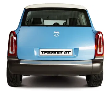 El prototipo vuelve a las raíces de los Trabant con unas formas bastante cuadradas, sobre todo por su cabina y por su frontal saliente. También se permite un toque retro como el de los faros completamente redondos o la parrilla trapezoidal semiabierta. En el resto de sus partes conjuga detalles originales como el techo transparente o los faros alargados traseros al estilo del viejo Trabi con otros detalles menos originales, como las protecciones de color gris. En cierta manera y salvando las distancias me recuerda a un Mini Clubman.