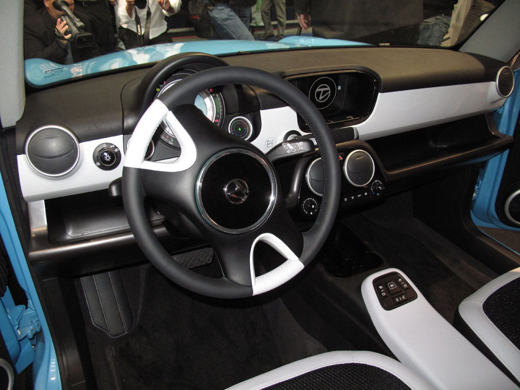 Una de sus cuidadas características es su interior, que es minimalista además de estar muy bien iluminado. Y sin duda tiene una extraña relación entre la piel que viste algunas partes, los numerosos huecos “low-cost” y las salidas de aire de lo más corriente. La calidad no es como la de antaño pero estamos hablando todavía de un prototipo y lo normal es sacar lo mejor para este nuevo Trabant “piloto”.