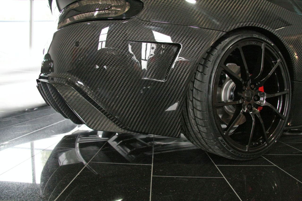 No es fácil mejorar la elegancia y la clase de un Aston Martin, y Mansory se ha centrado en proporcionarle un aspecto más deportivo. ¿Qué nos encontramos aquí? Prácticamente todas los paneles del coche realizados en fibra de carbono, o pegados directamente sobre la chapa estándar del coche en aquellos sitios donde no es posible hacer un panel a medida, además de un nuevo faldón delantero, dos entradas de aire adicionales sobre el capó para refrigerar mejor el V12 de 6 litros o un faldón trasero de nuevo diseño con un difusor integrado.
