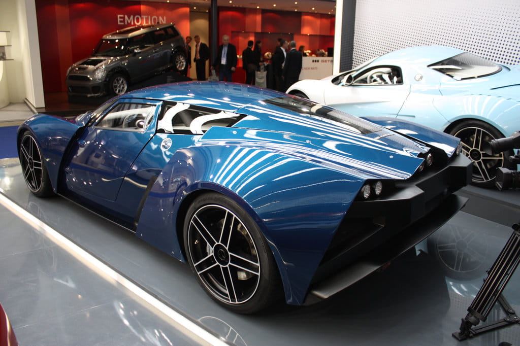 El Salón de Frankfurt 2009 fue el escenario escogido por la marca rusa para presentar su nuevo Marussia B2, un nuevo deportivo híbrido que sigue fiel a la mecánica del modelo que le precede, pero que en este caso luce un diseño mucho más radical con una carrocería repleta de elementos con fines aerodinámicos y entradas y salidas de aire que ya de paso tienen como objetivo sorprender a cualquiera que se cruce con esta máquina.