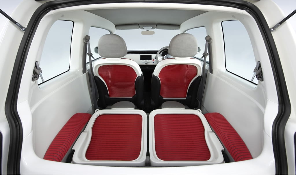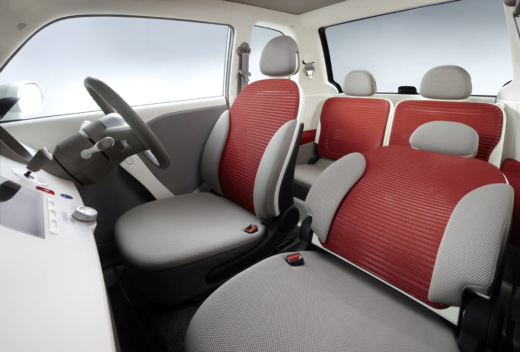 El interior no puede ser más minimalista, con un sencillo salpicadero que acoge el volante, el cuentakilómetros y un sencillo navegador. Los asientos por su parte están formados por módulos de plástico tapizados que pueden extraerse para cambiar por completo la decoración en apenas unos minutos.