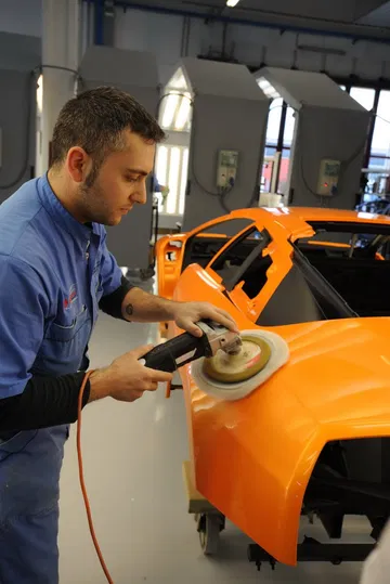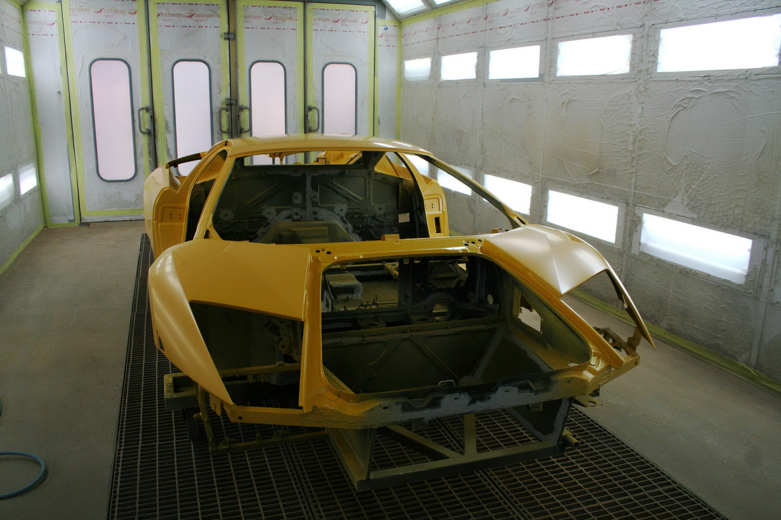 En el siguiente vídeo se muestra el proceso de pintado de la carrocería de fibra de carbono del Murciélago, una tarea manual de bastante complejitud, ya que el resultado siempre debe ser perfecto, que se realiza en otra factoría situada a unos kilómetros de Sant’Agata Bolognese. Como dice en el propio vídeo, el trabajo se realiza a mano ya que dado el bajo ritmo de producción no compensa incluir una línea de robots de pintura.