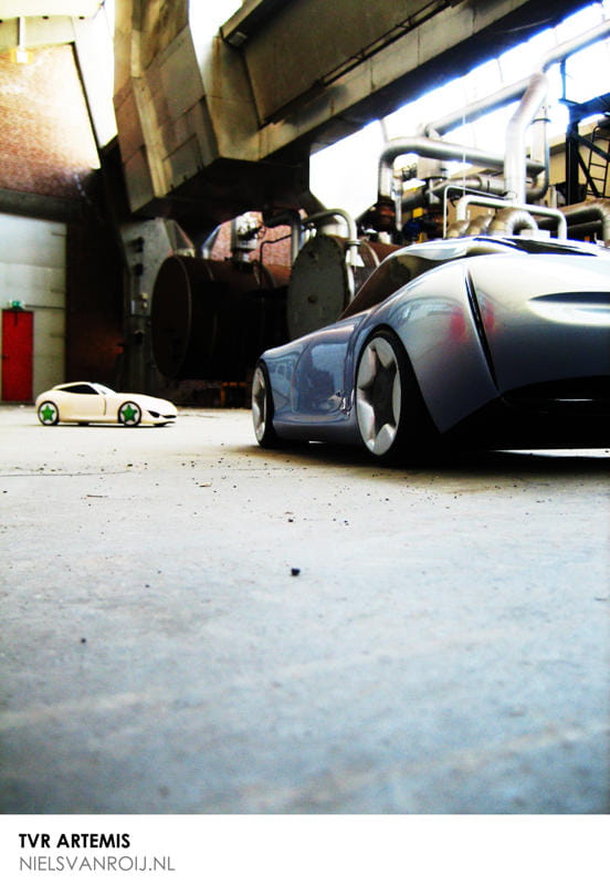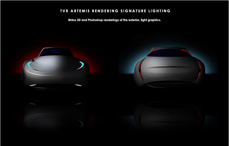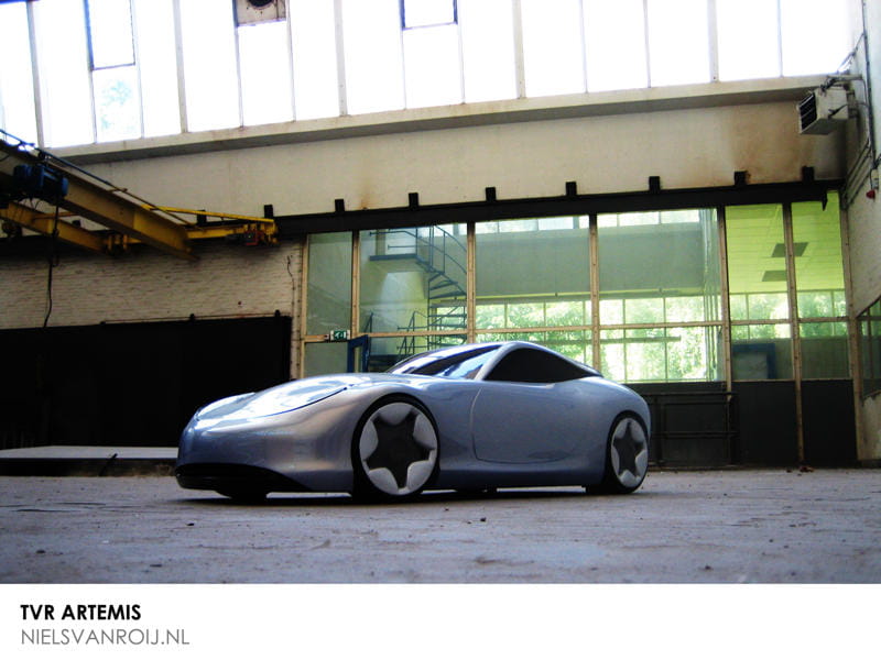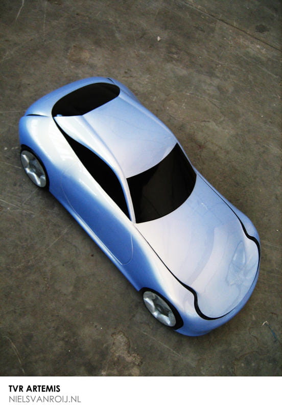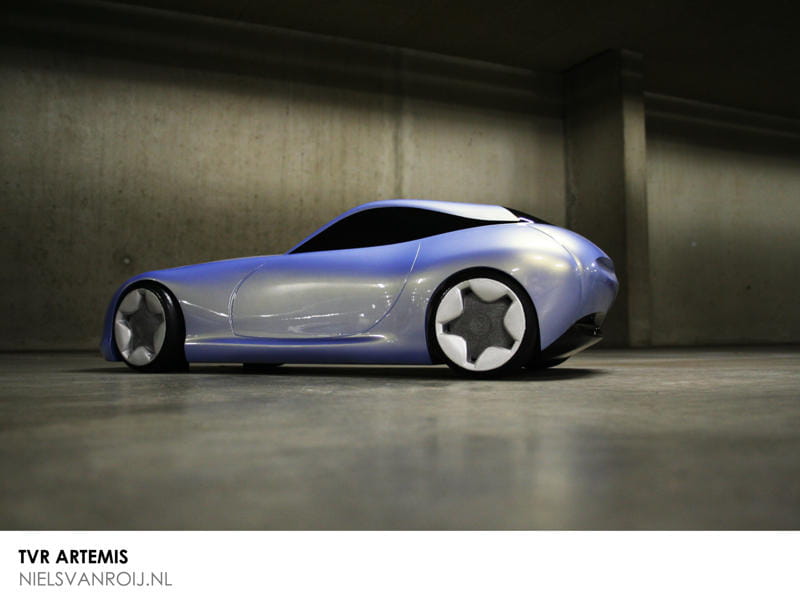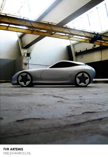 El TVR Artemis toma su nombre de Artemisa, la diosa griega de la fertilidad y de la caza. Sus líneas, muy fluidas y visionarias, dibujan un superdeportivo que, sin perder del todo la fuerte personalidad de los TVR, dan un giro radical al controvertido y tradicional diseño de la marca. Las imágenes reflejan el potencial que destilaría un posible modelo de producción, aunque por el momento el TVR Artemis es tan sólo una maqueta a escala 1:5 de forma totalmente extraoficial, y probablemente nunca vaya más allá.