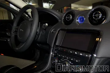 Sin duda alguna uno de los detalles más llamativos está tras el volante, en donde habitualmente encontraríamos los relojes del cuentakilómetros y cuentarevoluciones, ya que en el Jaguar XJ han sido sustituidos por una pantalla de alta resolución que nos muestra de manera muy intuitiva el cuentakilómetros, el cuentarevoluciones, el navegador GPS y todos los avisos y advertencias de seguridad y del motor.