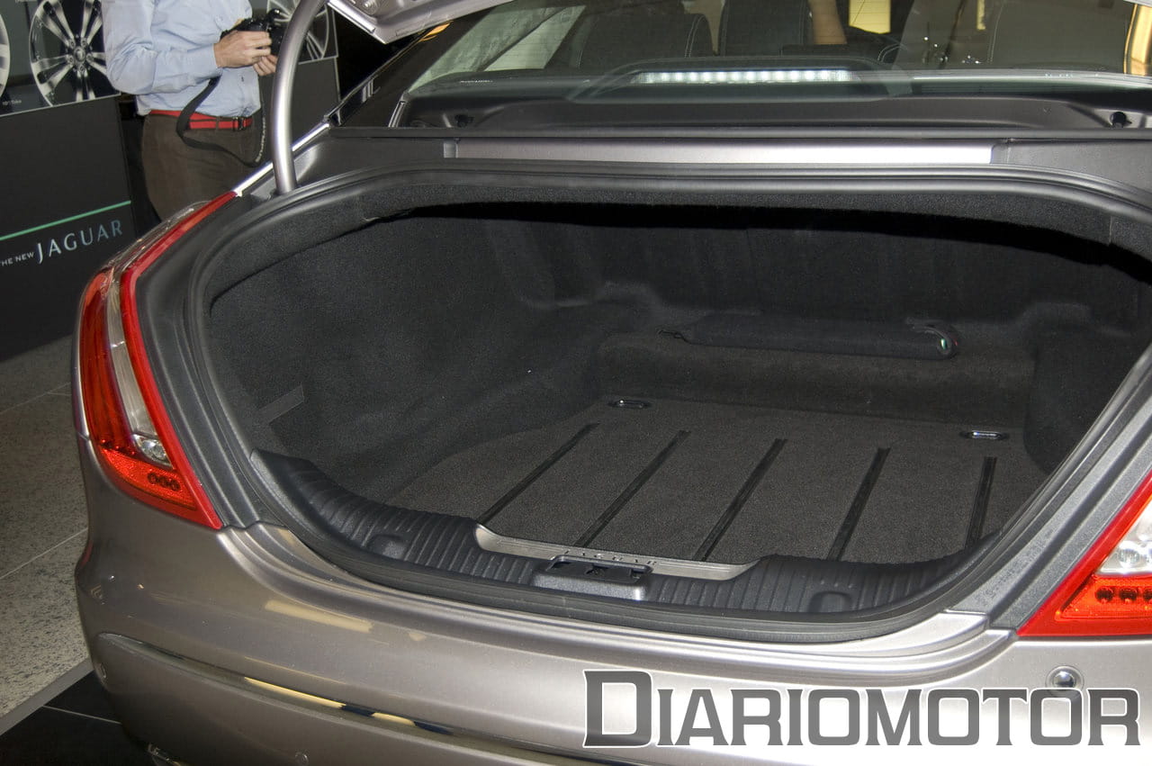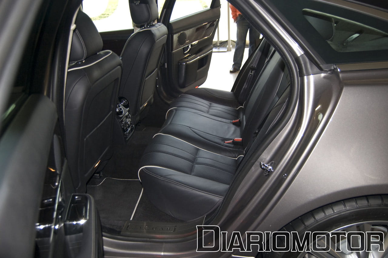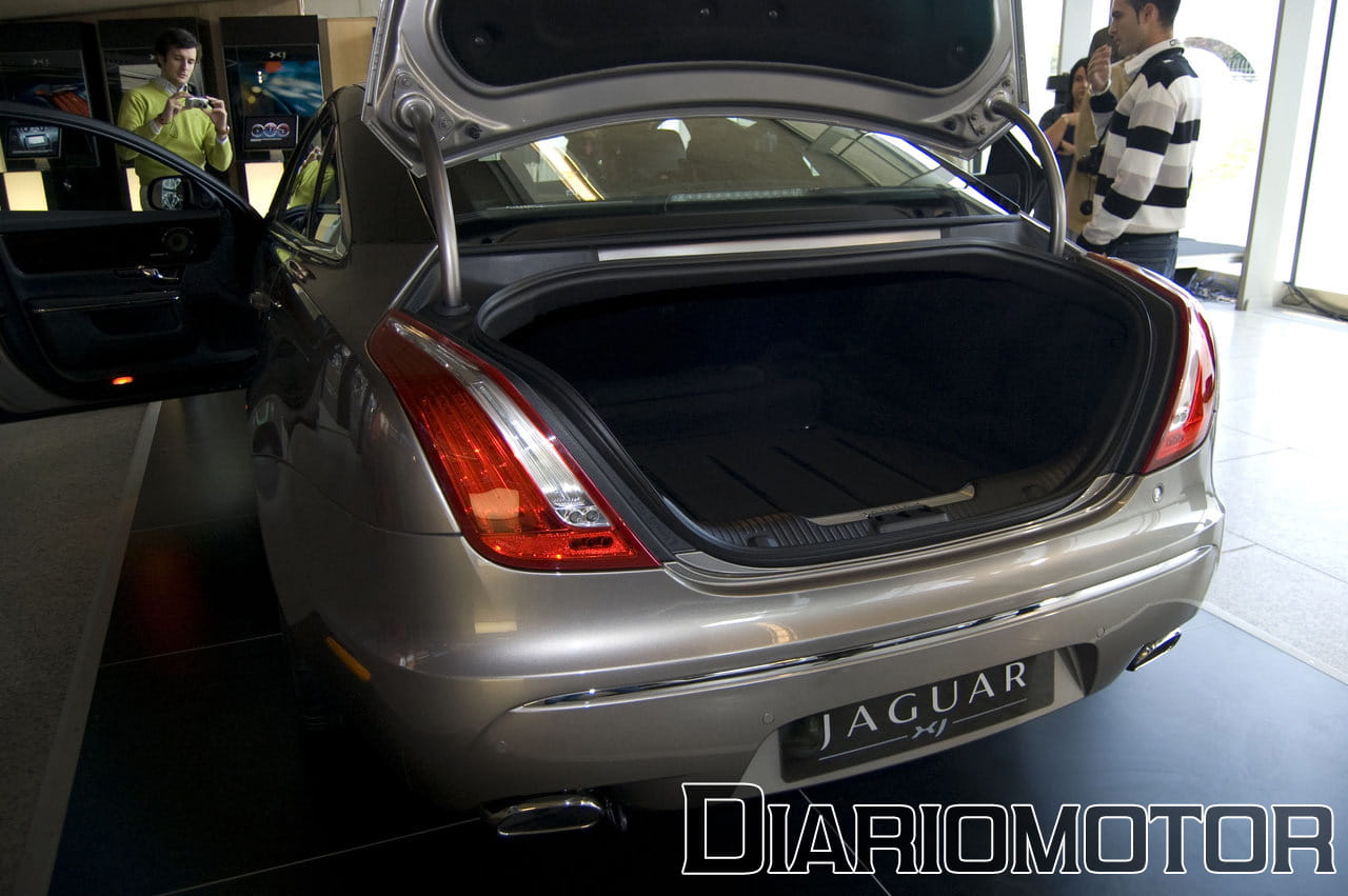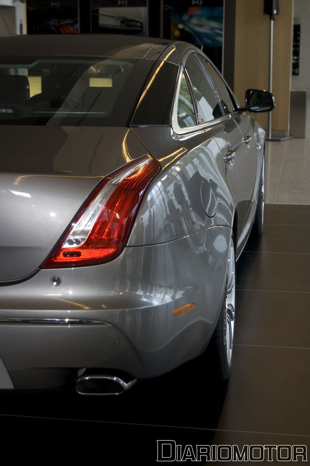 Desde fuera el Jaguar XJ impresiona, es bajo de estatura pero con la robustez de las lineas y el voladizo trasero elevado por el que se prolonga el techo con ligera caida da la impresión de ser mucho más grande de lo que en realidad es maxime teniendo en cuenta que la unidad que se presentó era la de batalla corta, con 5,12 metros de longitud.