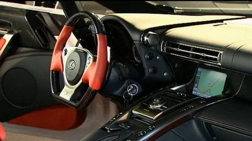 Con sólo mirar el volante apreciamos las enormes dosis de originalidad empleadas en su diseño, hay partes forradas en cuero, pero el grueso está fabricado en fibra de carbono. A ambos lados del panel de instrumentos hay dos ruletas con los que podemos trastocar la personalidad del LFA, desactivando el ESP o entrando en el modo Sport, o bien activar funciones como un cronómetro, para esas vueltas al Infierno Verde. Toda la instrumentación es digital y se muestra en una pantalla LCD.