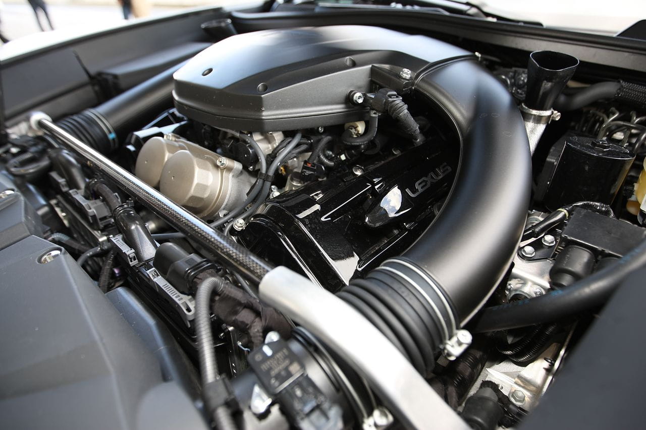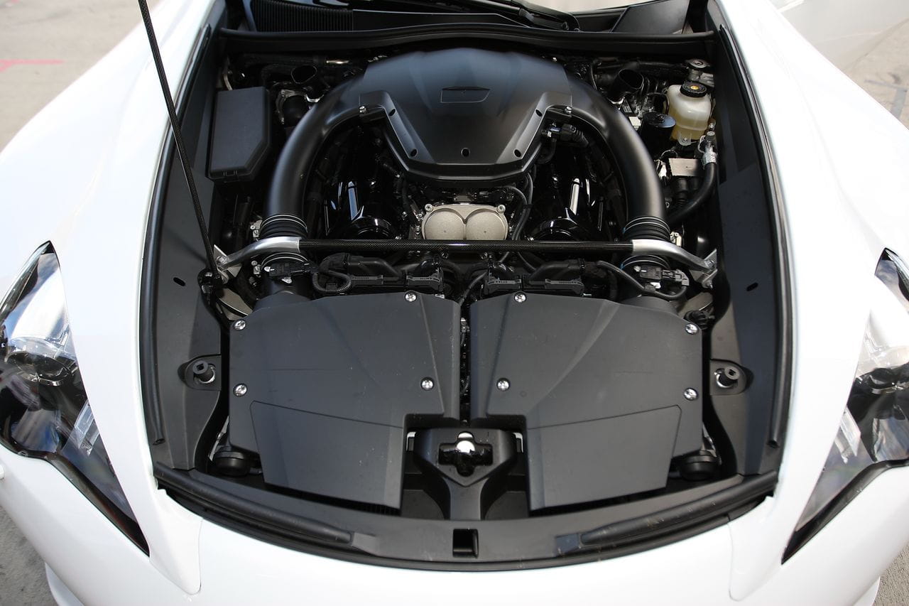 Montado en posición central delantera se encuentra el motor denominado 1LR-GUE. Es un 10 cilindros en V de aspiración atmosférica. Emplea la inyección indirecta y tiene un ángulo entre bancadas de 72º, según los ingenieros de Lexus, el óptimo para un funcionamiento suave. Tiene tecnología de alzado variable de válvulas y una relación de compresión muy elevada, 12:1. Con una cilindrada de 4.805 cc entrega 560 CV de potencia a 8.700 rpm, la línea roja está a 9.000 rpm y el corte de inyección a las 9.400 rpm.