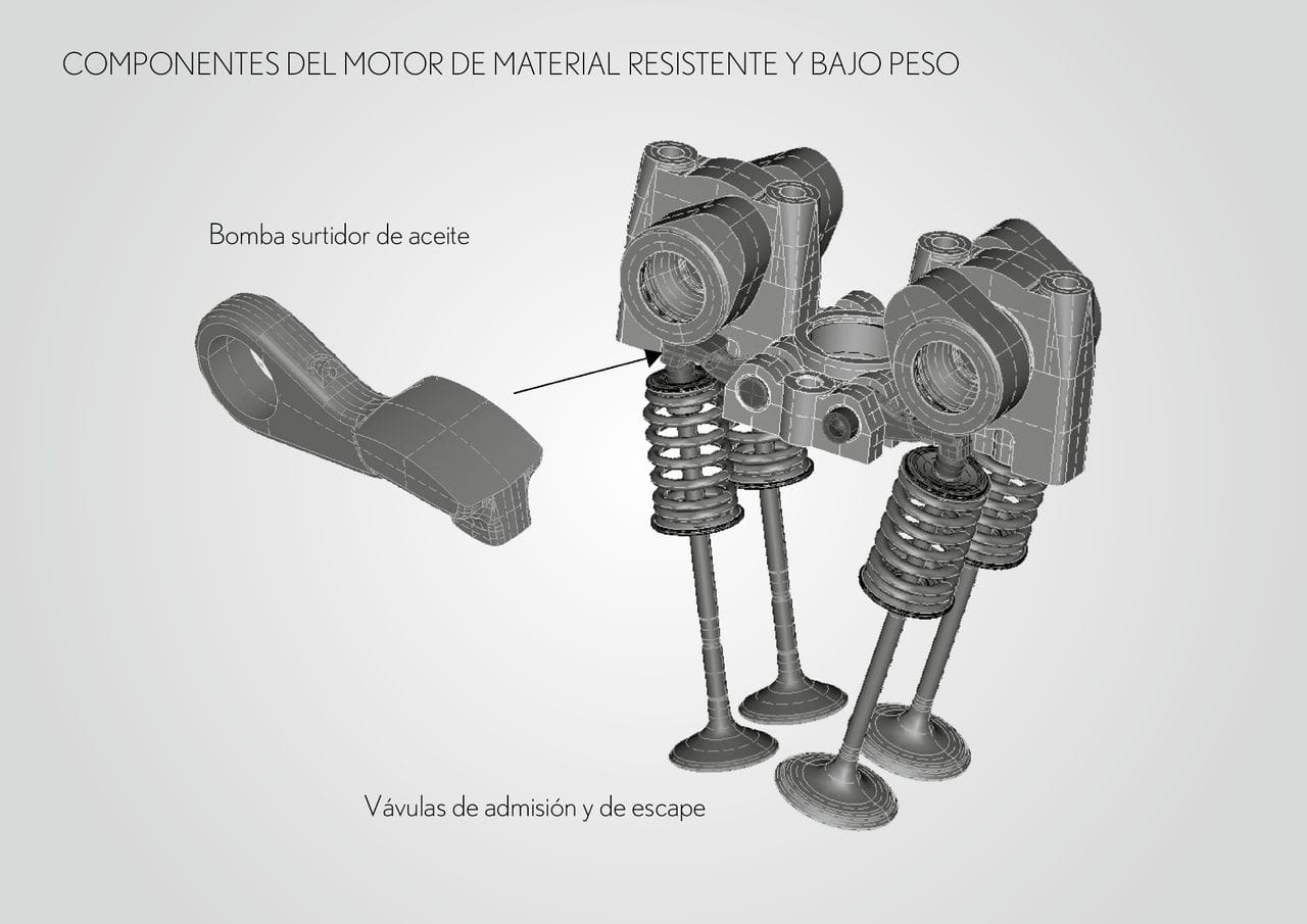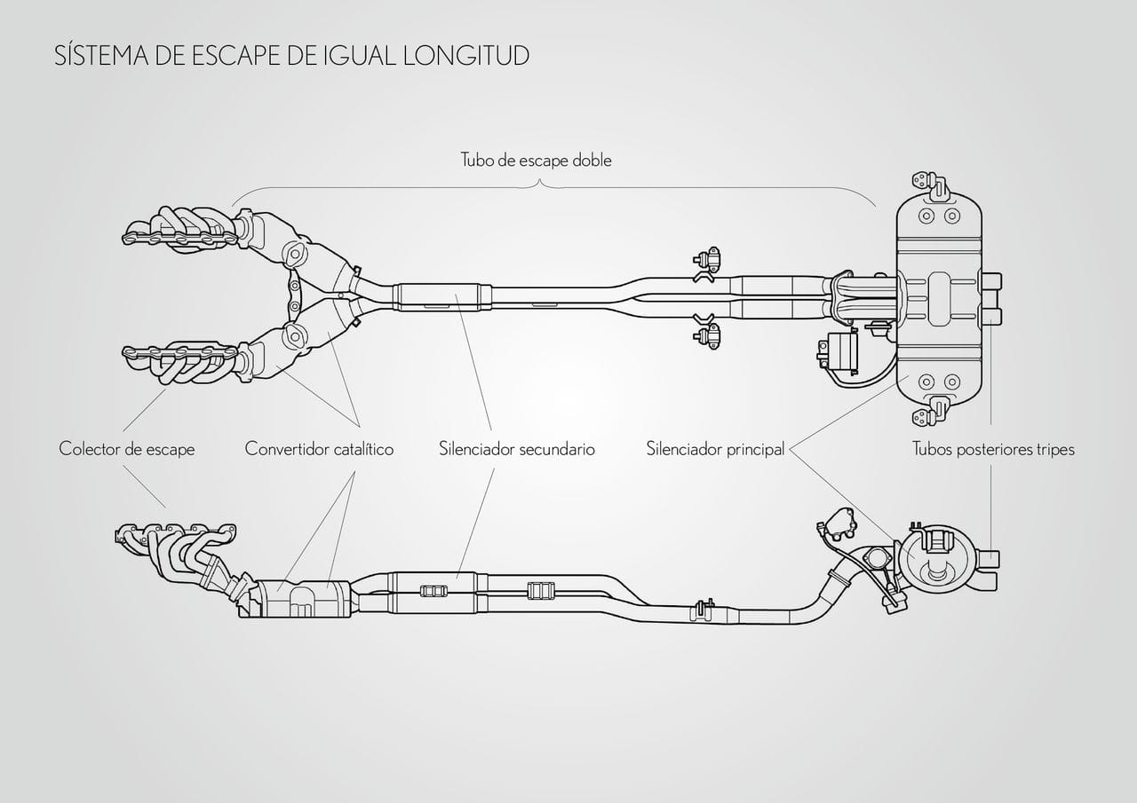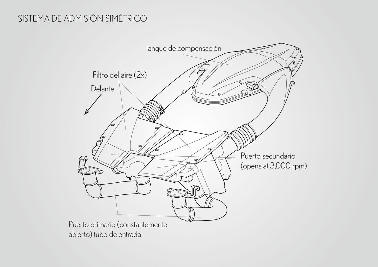 La cifra de par máximo es de 480 Nm a 6.800 rpm, aunque el 90% del par total está disponible ya desde las 3.700 rpm. Las válvulas y las bielas son de titanio, diversas piezas internas son de materiales ligeros para evitar inercias. Su aceleración es formidable: sin una marcha engranada puede pasar del ralentí a las 9.000 rpm en sólo 0.6 segundos. Es tan compacto como un V8 y tan ligero como un V6 y se ha desarrollado en colaboración con Yamaha apoyándose en la experiencia en competición.