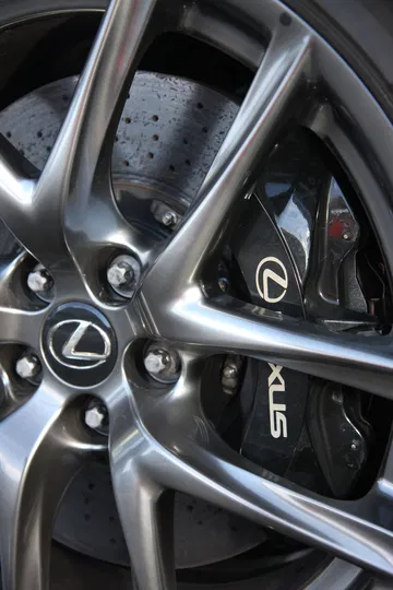 En el eje trasero su diámetro es de 340 mm y emplean pinzas de 4 pistones. El freno de mano son dos pequeñas pinzas en un lateral de los frenos traseros. La suspensión es independiente, de paralelogramo deformable en el eje delantero y multibrazo en la zaga, se ha calibrado gracias a la experiencia de Lexus en las 24 Horas de Nürburgring. El coche se asienta sobre unas llantas BBS de 20 pulgadas y neumáticos Bridgestone de medidas 265/35 ZR20 delante y 305/30 ZR20 en el eje motriz.