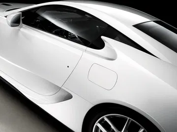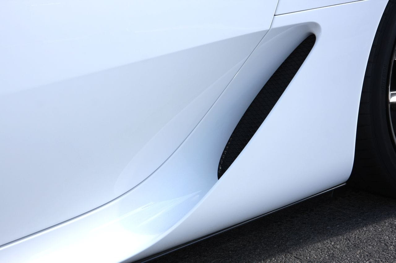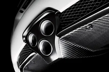 La atención está en los detalles, los retrovisores dirigen el flujo de aire a las tomas de refigeración traseras, en sí mismas enmarcadas en la ventanilla trasera. Las angulosas ópticas traseras suponen el final de la línea de perfil, pero les roba protagonismo la triple salida de escape trasera. Aunque en algunas fotos no lo veamos hay un spoiler trasero, que se eleva hidráulicamente para incrementar el apoyo aerodinámico a partir de los 80 km/h. Una solución similar la emplean los Audi R8 o los Porsche 911 Carrera.