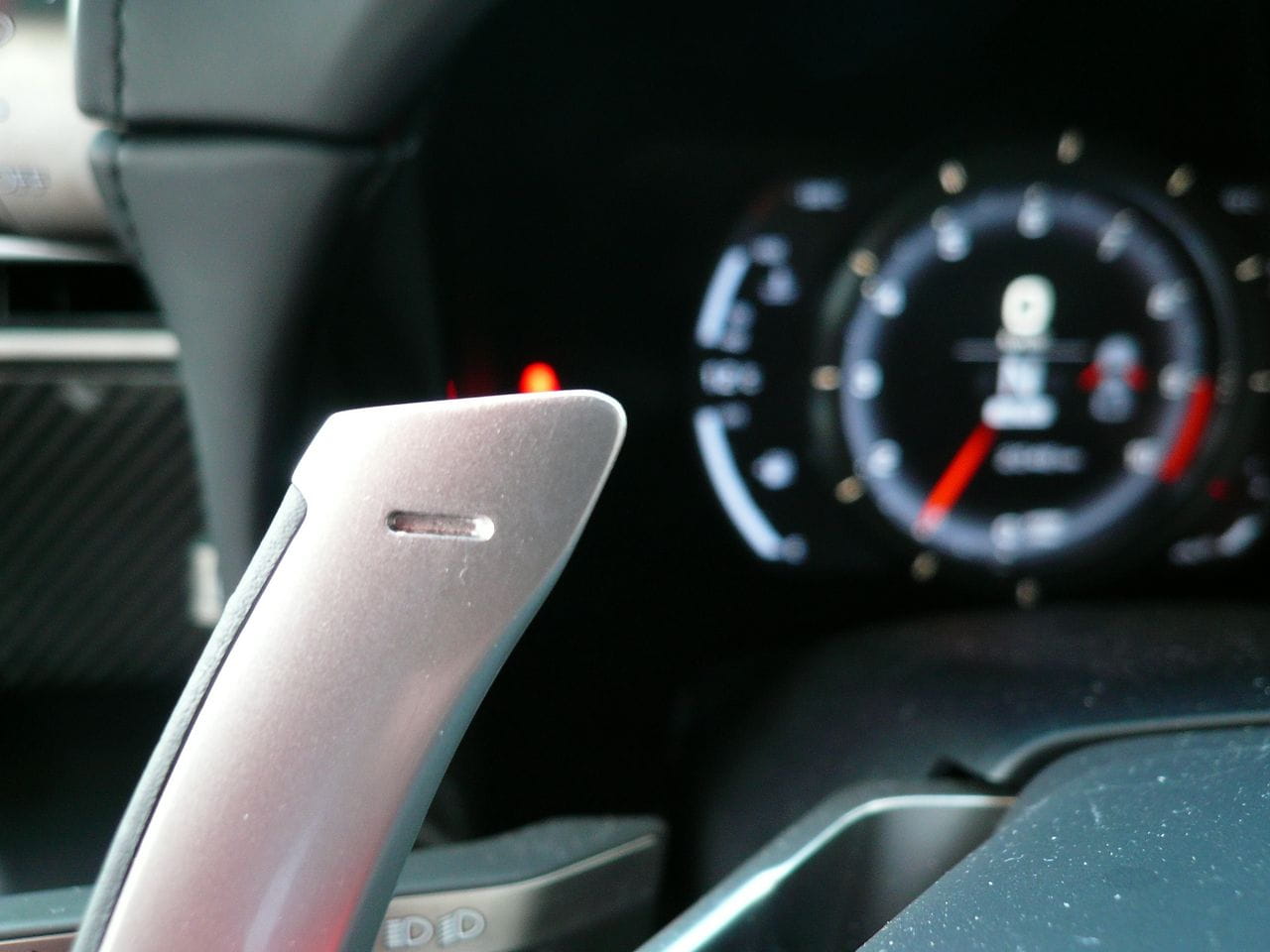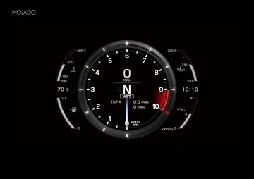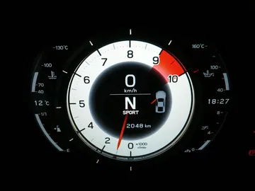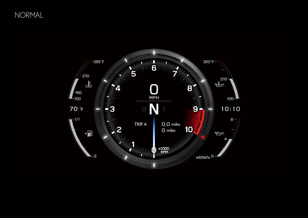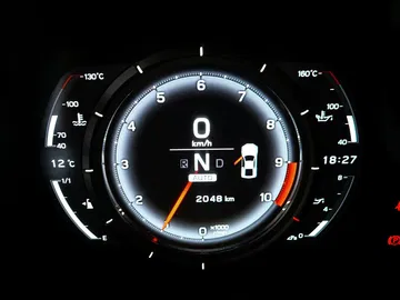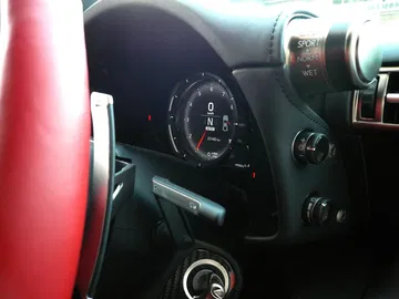 El volante está achatado en su parte inferior y combina fibra de carbono con cuero. En general es un diseño muy futurista, que se evidencia también en la instrumentación. Es completamente digital y se proyecta en una pantalla LCD. En los cuatro modos de funcionamiento a elegir (Auto, Normal, Sport y Wet) cambia su aspecto y en todos ellos se ilumina en rojo al alcanzar las 9.000 rpm, instándonos a cambiar de marcha. Se puede iluminar en verde o naranja en los puntos prefijados por el conductor.