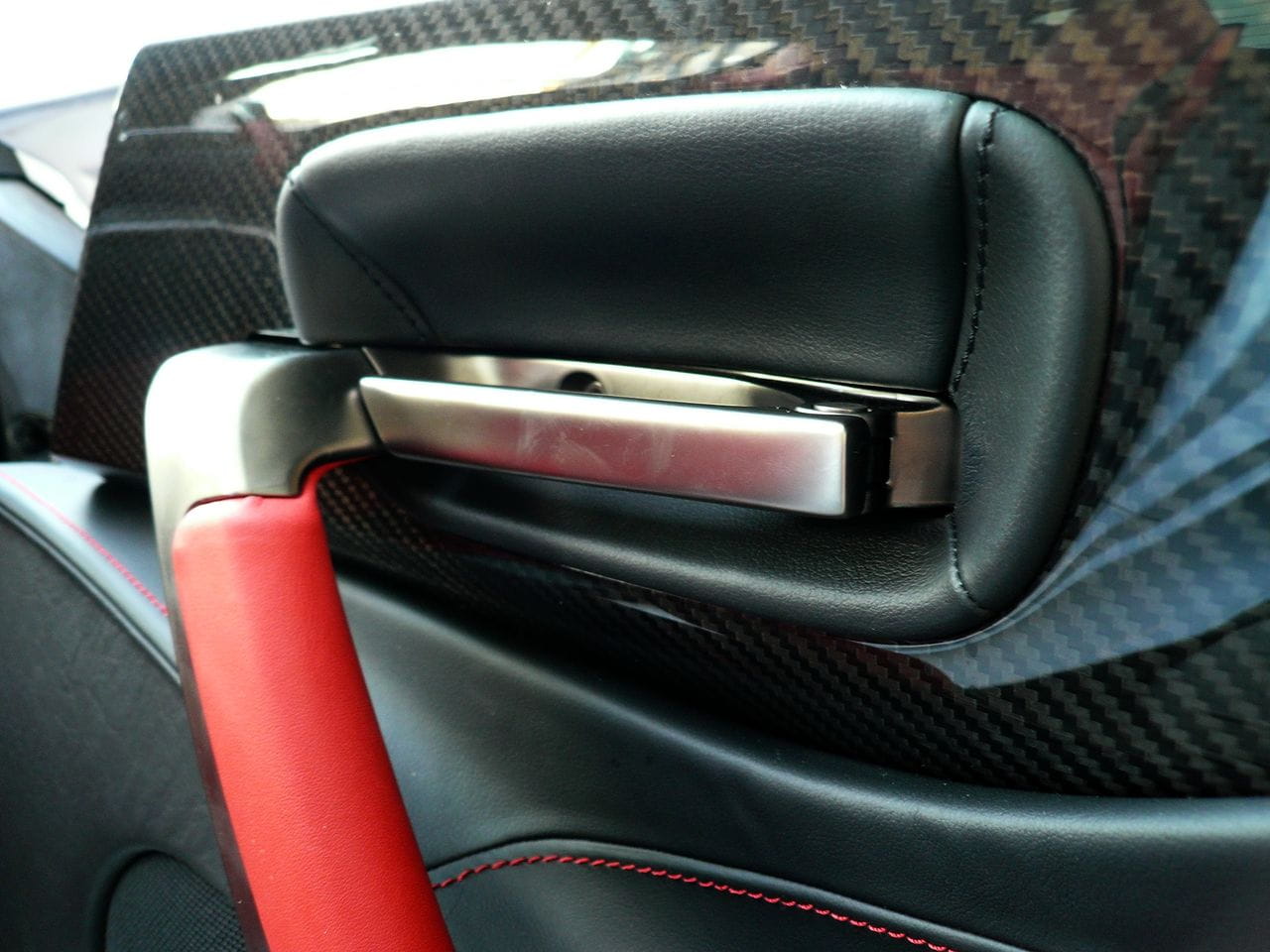 Todo esto está muy bien, pero sólo se puede experimentar desde el asiento del conductor o el copiloto. Para ello debemos entrar al habitáculo y reclinarnos en una postura de conducción baja. Los asientos deportivos forrados en cuero y Alcantara (casi buckets) recogen nuestro cuerpo a la perfección. La consola central se extiende sobre un túnel de transmisión muy voluminoso, en lo más profundo de ella se encuentra el navegador, que a buen seguro no tendrá problemas de legibilidad.