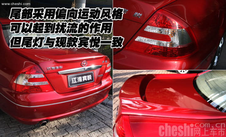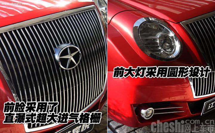 Por detrás los grupos ópticos son una copia exacta de un Mercedes Clase C de la anterior generación, aunque para distinguirse del modelo alemán los diseñadores de Jianghuai han ideado un curioso spoiler integrado en la tapa del maletero. En el frontal lo más llamativo es la gigantesca parrilla con un borde cromado y sendos faros redondos.