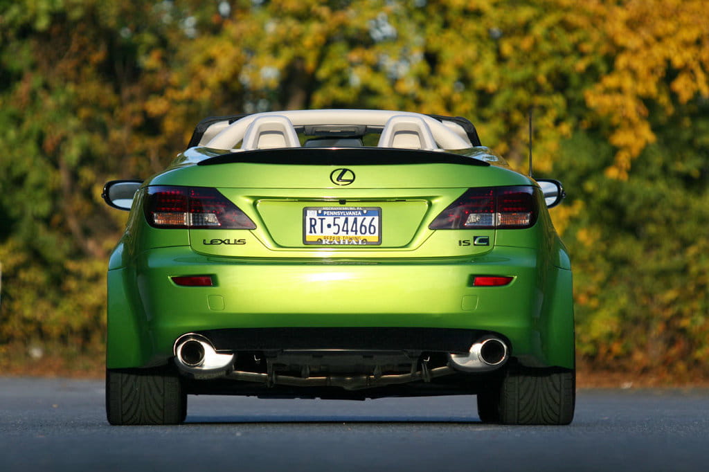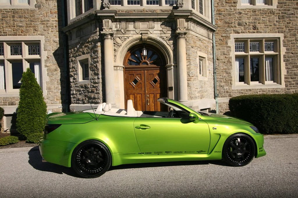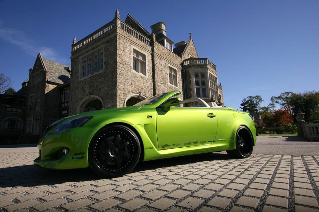 Estéticamente quizás el color verde brillante sea demasiado llamativo y desmerezca un tanto el resultado final, pero hay que decir que los creadores de esta preparación trataron de ser fieles a los diseños de la marca adaptando las defensas, los laterales rebajados y las salidas de aire tras los pasos de rueda del Lexus IS 2010 F-Sport, el paquete deportivo de la berlina que se comenzará a vender en Europa a finales de año.