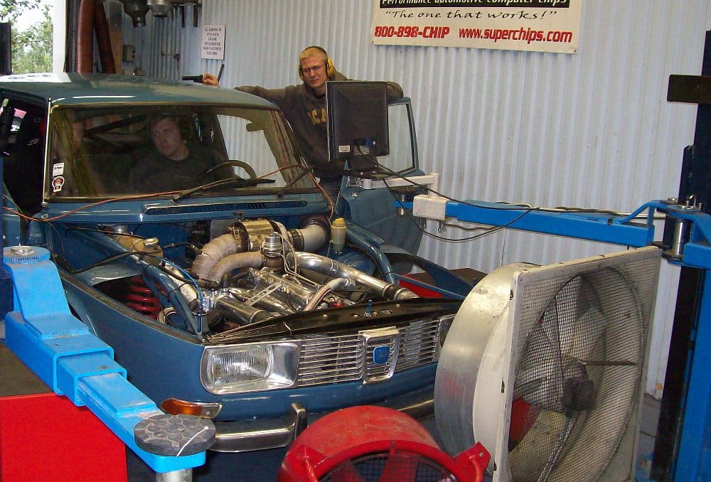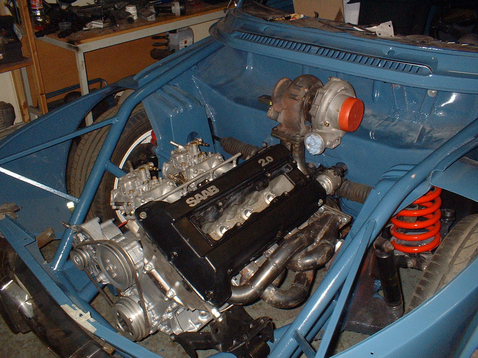 Unas prestaciones de infarto no se consiguen con los 85 CV de serie. El motor que lleva es ahora un 2.0 de cuatro cilindros, procedendente de un Saab 900, no la unidad original. Tras acoplar un turbocompresor Holset HX50 de proporciones bíblicas, un intercooler del tamaño de un aparato de aire acondicionado y una centralita VEMS la salida total ya alcanza los 700 CV. Para una tracción óptima en el drag racing la potencia pasa al suelo a través de un sistema de tracción integral quattro, procedente de un antiguo Audi 100.
