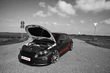 A este paso el Volkswagen Scirocco va camino de ser uno de los automóviles con más preparaciones de la historia y no solo estéticas, sino sobretodo mecánicas, ya que el motor TFSI de 2.0 litros parece capaz de ofrecer mucho más que los 265 CV de potencia y 350 Nm que consigue ofrecer el recién presentado Scirocco R.