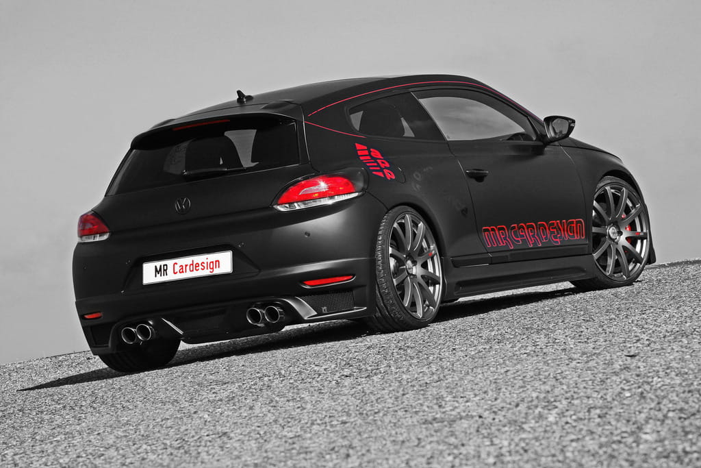 En este caso el Volkswagen Scirocco puesto a punto por Mr Car Design ha recibido un nuevo kit de turboalimentación, una centralita reprogramada y un tubo de escape diseñado a su medida para obtener del TFSI una potencia de 370 CV y un par máximo de 519 Nm.