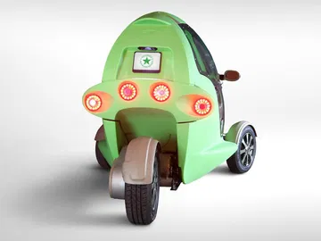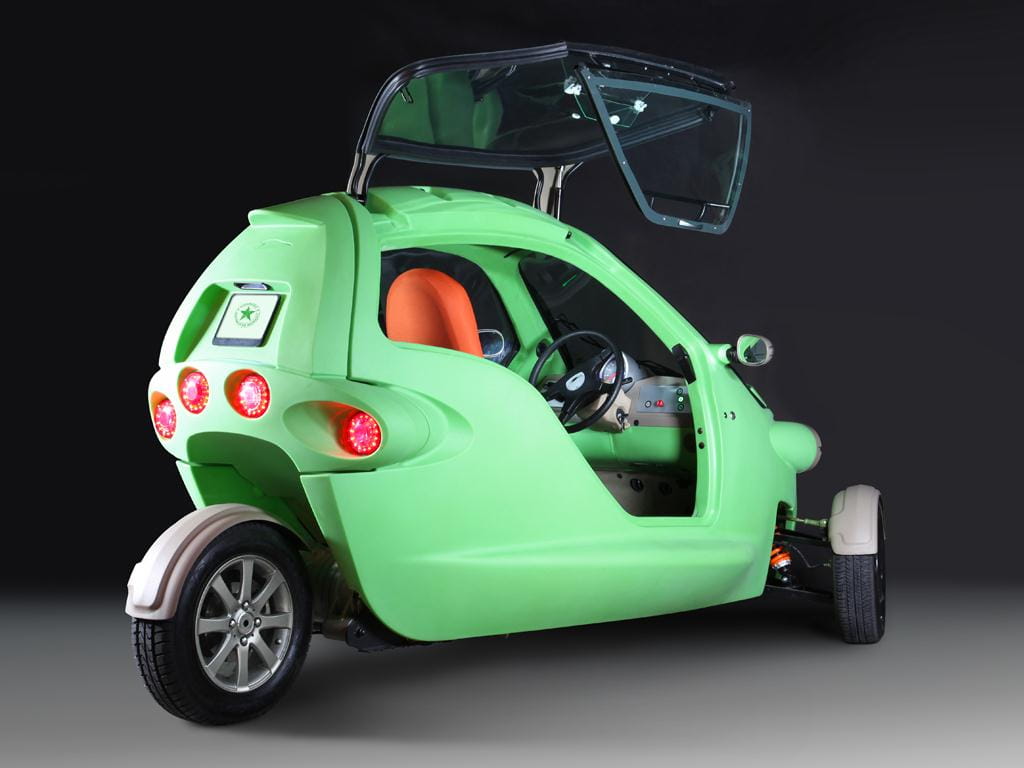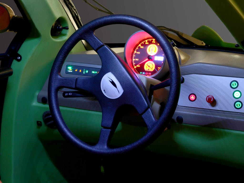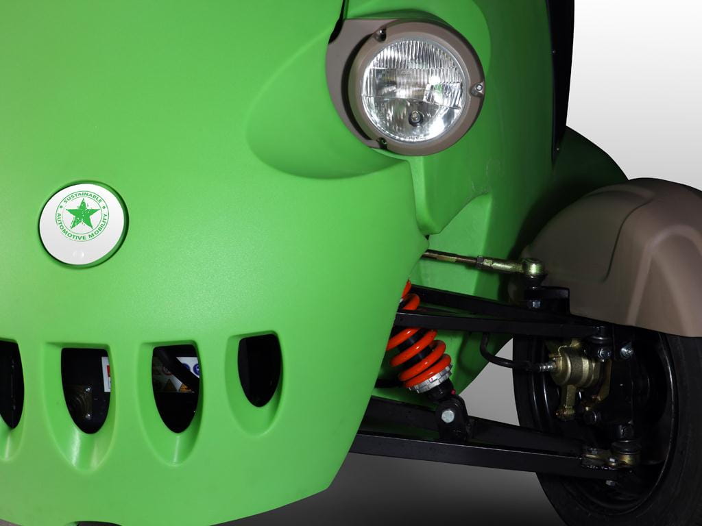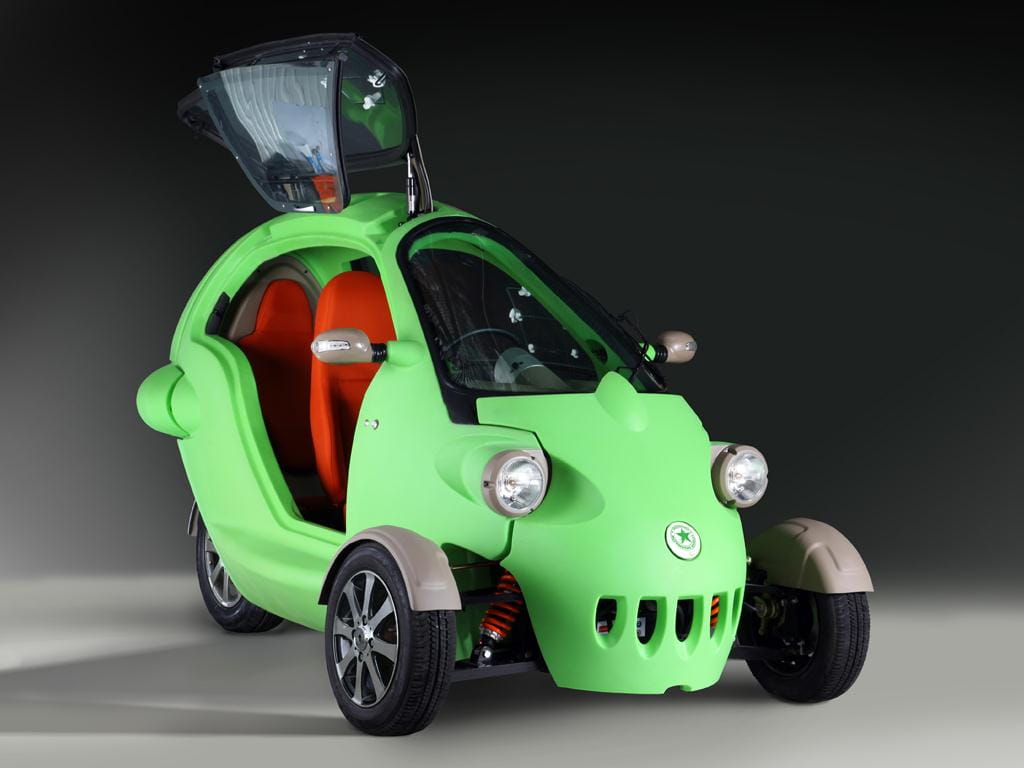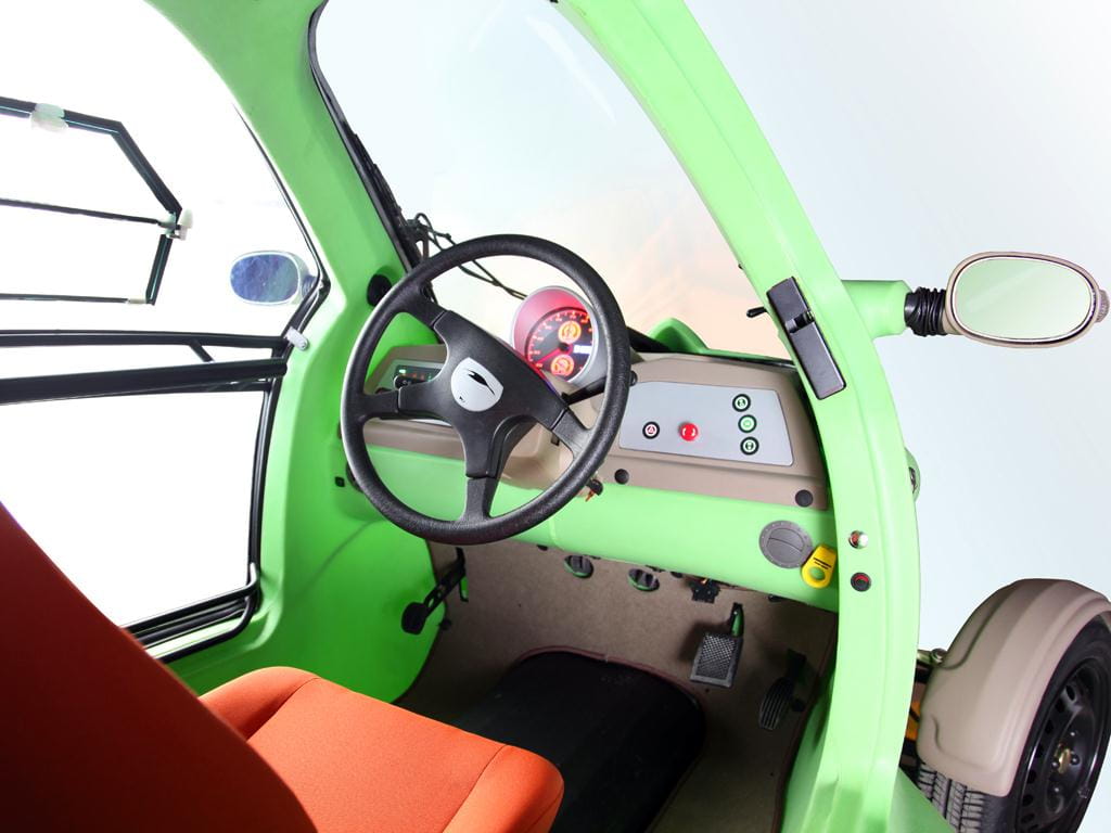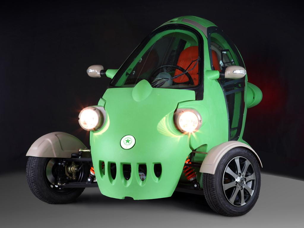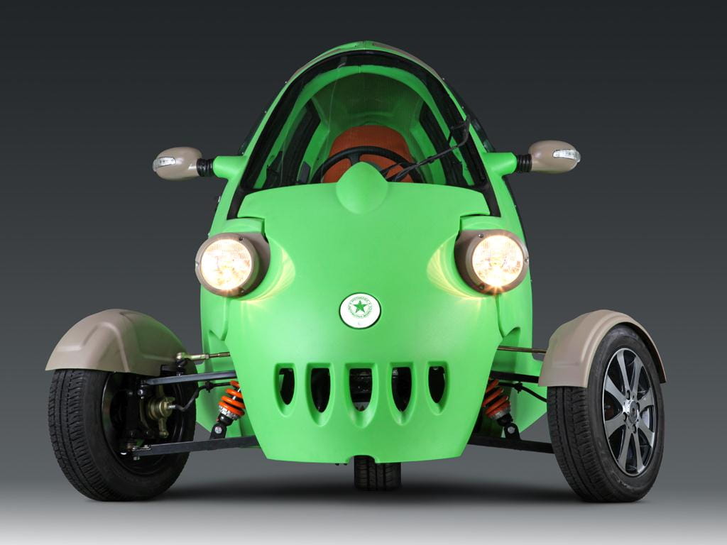 Con un exoesqueleto de plástico de un llamativo color verde manzana, esos faros redondos y sus ruedas delanteras cubiertas por unos escueto guardabarros, más que la imagen de un coche parece que estuvieramos mirando una foto de la rana Gustavo (o Kermit, como se la conoce en el mundo anglosajón).