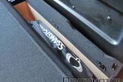 La palanca de cambios está cerca del volante y el freno de mano no molesta en absoluto cuando está desacoplado. Pasamos ahora a repasar los diversos huecos portaobjetos del SsangYong Actyon Sports, una característica necesaria en un vehículo polivalente. Uno de los más útiles está bajo los controles de climatización, no está acolchado y es suficientemente grande para unas siete carátulas de CD, para que os hagáis una idea. La guantera es pequeña: cabe la documentación del coche, el manual y muy poco más. En todas las puertas hay huecos, son profundos y son ideales para libros o revistas. En ellos no entra una botella de agua, para eso ya están los dos compartimentos que hay entre los asientos delanteros.