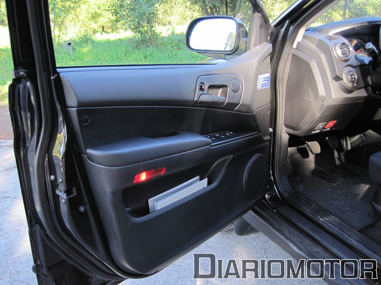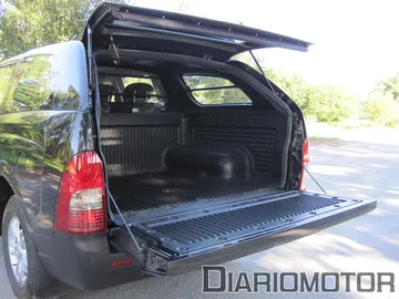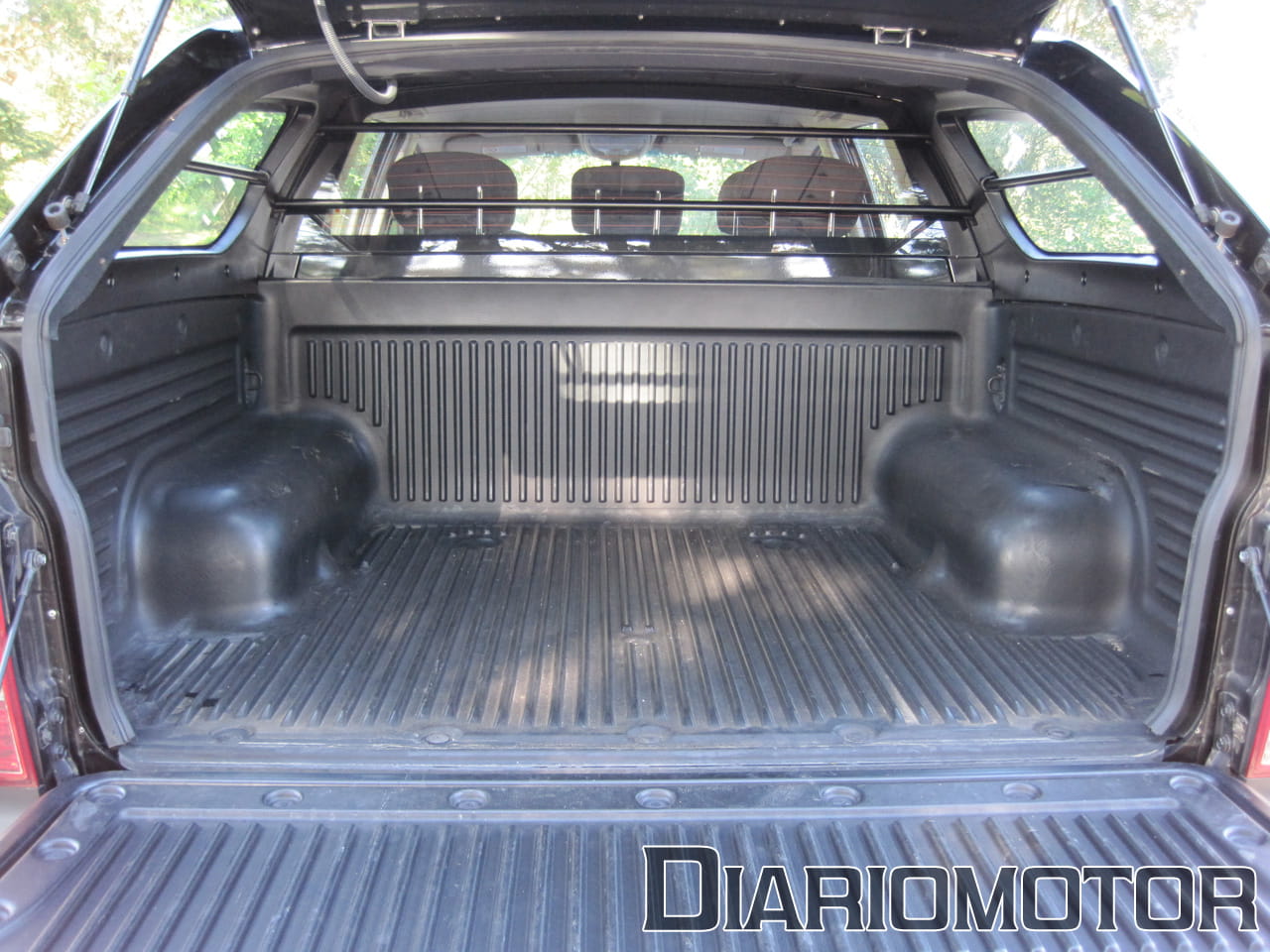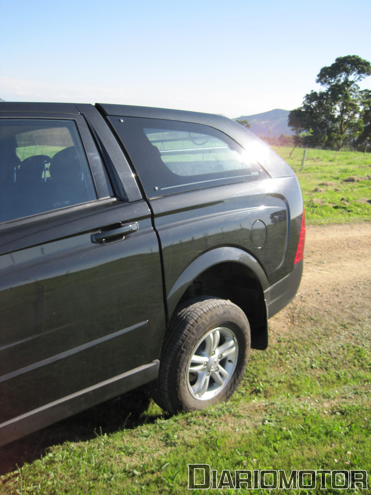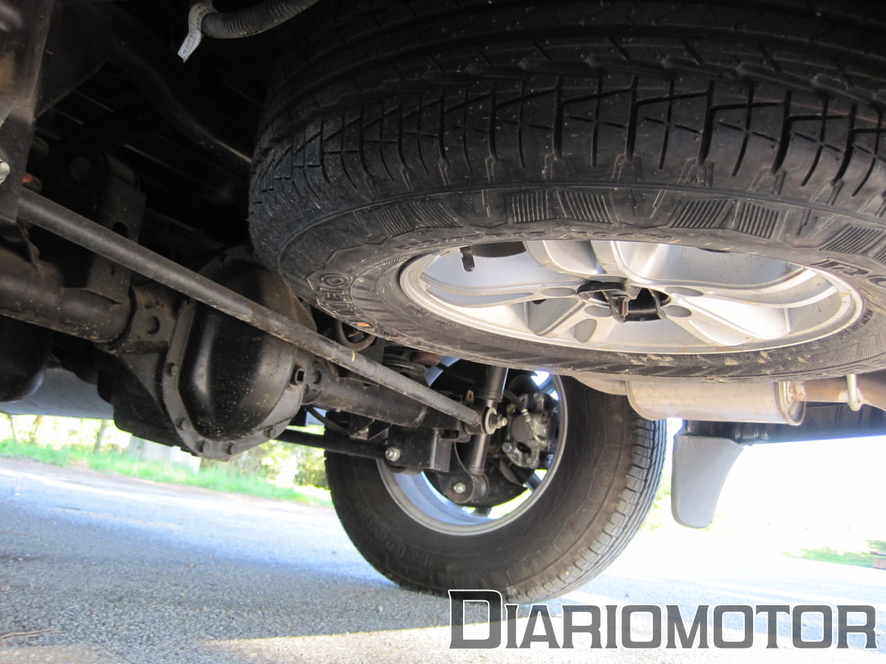 Como ya citamos antes, tiene beneficios más que evidentes para la dinámica frente a las típicas ballestas, pero limita la capacidad de carga total. El conjunto mide 4.965 mm de longitud, 1.755 mm de alto y 1.900 mm de altura. La batalla se extiende a lo largo de 3.060 mm (entre sus ejes cabría un Toyota iQ) y los voladizos van desde los 850 mm del delantero hasta los 1.055 mm del trasero. El conjunto se asienta sobre neumáticos Kumho Road Venture A/T de medidas 225/75 R16, montados en llantas de aleación de 16 pulgadas y más enfocados a un uso todoterreno que a la carretera.