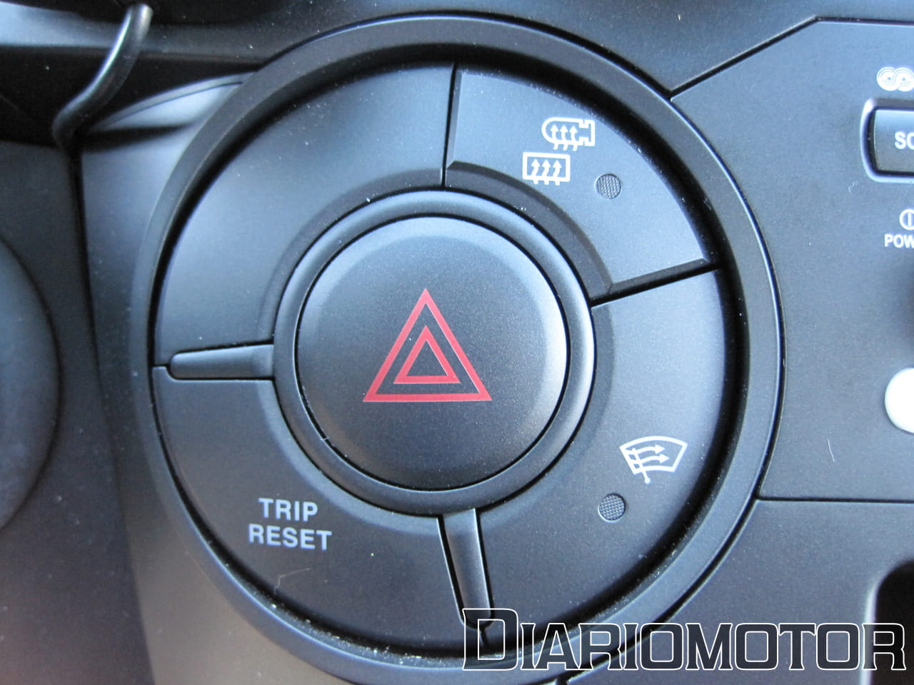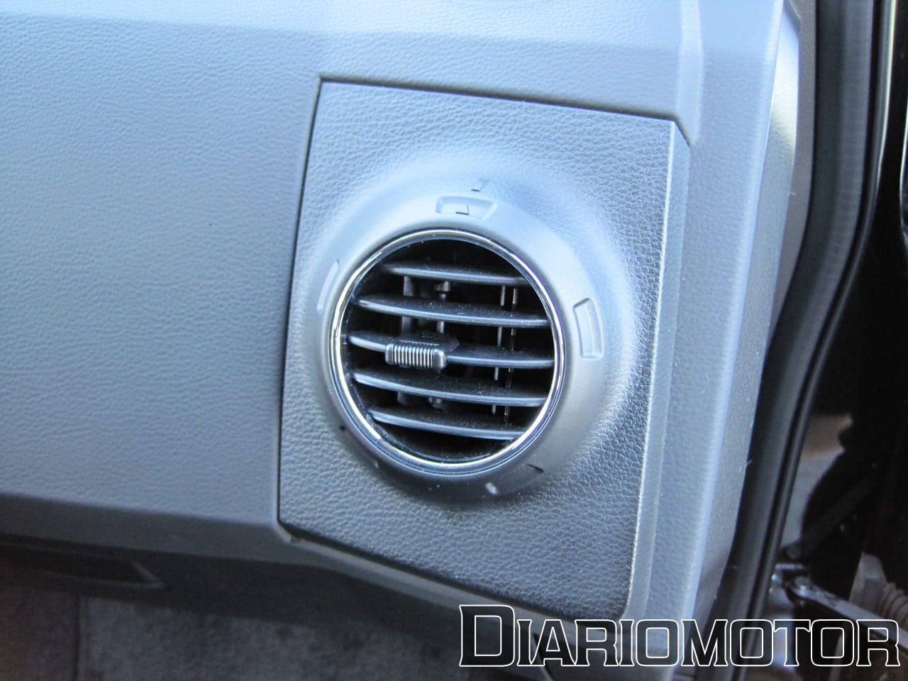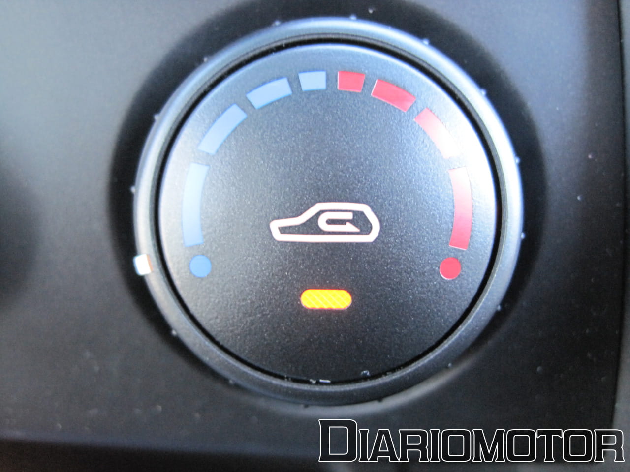 - Aire acondicionado: Se descompone en tres ruletas y tiene un manejo muy sencillo. La ruleta de la izquierda nos permite seleccionar la intensidad de los ventiladores (de 1 a 4) y si la pulsamos conectamos el aire acondicionado. Su activación depende de que la ruleta de la derecha esté situada en frío. La misma ruleta derecha tiene un botón central que activa la recirculación. La central es la que enfoca el flujo de aire a cara, pies, etc. Si queremos desempañar el parabrisas la giramos a la derecha y se activa el A/C con el ventilador a plena potencia, quitando el vaho en pocos segundos.