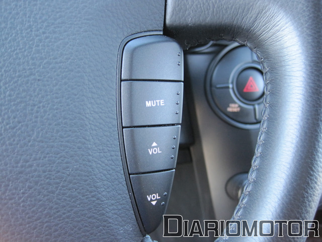 - Volante multifunción forrado en cuero: ya hemos hablado del mismo, cuenta con varios botones de fácil accionamiento. Los “Seek” sirven para cambiar de canción o emisora de radio, “Vol” sube y baja el volumen del sonido, “Mute” silencia todo, “Mode” sirve para cambiar entre los modos CD y radio AM/FM y finalmente “PWR” sirve para apagar el equipo de sonido.