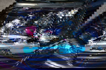 Esta es mi preparación favorita, simplemente por el enorme trabajo que lleva encima. El coche ha sido preparado por David Huang, un estadounidense que ha invertido más de 100.000$ en la berlina compacta. Lleva un motor 2JZ-GTE con tecnología VVT-i que ha sido elevado hasta más de 1.000 CV mediante un sistema de doble turbocompresión en serie de HKS, con turbinas de proporciones épicas. Prácticamente nada es de serie al abrir el capó, sólo hay que ver detalles como la admisión o la tapa de válvulas.